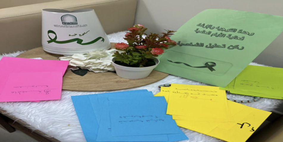 قدمت منسقة كلية وحدة التوجيه والإرشاد الدكتورة / مهيرة حسن محمد أحمد الأستاذ المساعد في قسم الفيزياء بكلية الآداب والعلوم بوادي الدواسر-شطر الطالبات بالتعاون مع أعضاء هيئة التدريس وطالبات الأقسام يوم الأربعاء الموافق١٤٤٥/٤/٣هـ فعالية اليوم العالمي للصحة النفسية (معرض الصحة