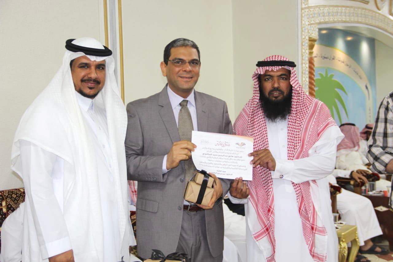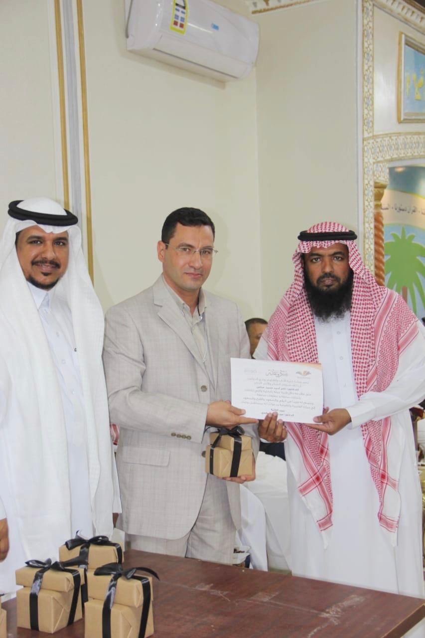 وعبر المطيري قائلا اليوم لـنا وقفه مع أشخاص أعـطوا الكـثير فـاستحقوا مـنا الـشيء اليسيـر تـميزوا بـعملهم وتـواجدهم ومـشاركـاتهم وعـطروا أرجـاء كليتهم بـعبق جهودهم ، فـهم هـرم التـميز وقمة الـتألق فجزاهم الله عنا خير الجزاء وبارك الله فيهم وفي جهودهم المبذولة خلال تلك السنوات ، ثم تم تكريم المحتفى بهم والتقطت الصور التذكارية بهذه المناسبة .