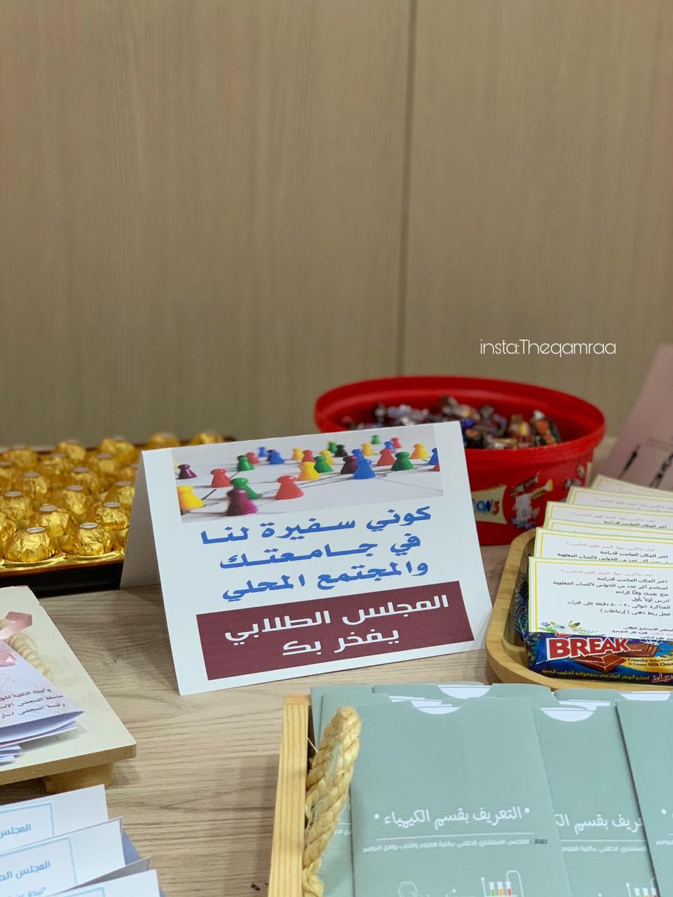 تحت رعاية عميد كلية الآداب و العلوم بوادي الدواسر الدكتور عمر المطيري ووكيلة الكلية الدكتورة رفعة دحيم شارك المجلس الاستشاري الطلابي اليوم الثلاثاء الموافق ٣/٦/١٤٤١ في تمام الساعة الحادية عشر تحت إشراف منسقة المجلس الاستشاري الدكتورة غادة طه في اللقاء التعريفي للطالبات المستجدات وقاموا بعمل ركن خاص بالمجلس يتمثل في تعريف الطالبات بالمجلس و دوره الفعال في الكلية وتوزيع مطويات على الطالبات تحوي أهداف المجلس ودوره ومطويات آخرى للتعريف بكل قسم بالكلية ونسبة غياب الطالبات وتوزيع درجات المواد الدراسية و ما إلى ذلك من العديد من الأشياء التي يتطلب معرفتها من قبل الطالبات المستجدات لمواكبة العملية التعليمية وتحقيق أهدافها المرغوبة.