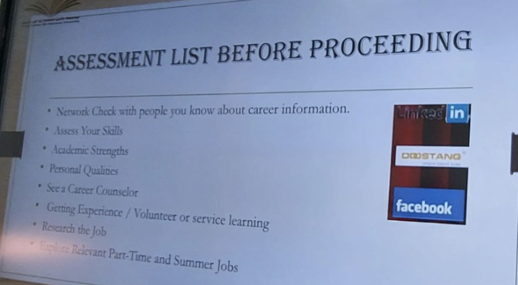 أقامت وحدة الخريجات ممثلة بمجال تنمية المهارات المهنية بكلية الاداب والعلوم بوادي الدواسر، بعقد دورة بعنوان " How to make a Career choice when you are undecided ". وذلك يوم الأحد 20/3/2022 وكانت الدورة موجهة للطالبات المتوقع تخرجهن ،قدمت الدورة سعادةالدكتورة Dr.SumayaSanober الأستاذالمساعد بقسم علوم الحاسب بالكلية حيث هدفت الدورة إلى كيفية اختيار الهدف المناسب من مجموعة خيارات حيث أن البعض يعتقد من المستحيل تحديد الهدف المناسب.