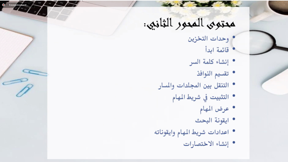 أما السلسلة الثانية فقد قدمت فيها شرحا عمليا كاملا للنقاط التالية : وحدات التخزين ,قائمة ابدأ , إنشاء كلمة السر , تقسيم النوافذ , التنقل بين المجلدات والمسار , التثبيت في شريط المهام ,عرض المهام , ايقونة البحث , اعدادات شريط المهام وايقوناته و إنشاء الاختصارات.