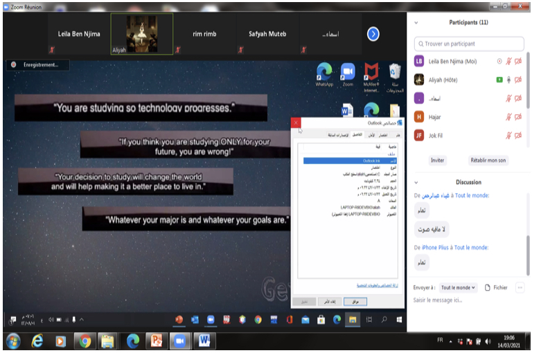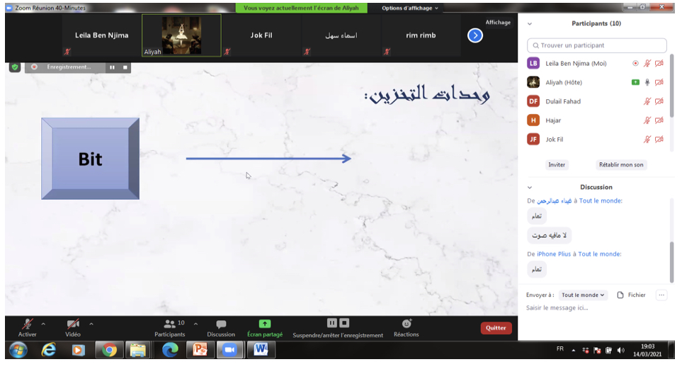 كما أوضحت الطالبة في البداية أن الحاسب هو لغة العصر و يعتبر عنصر فعال في تحقيق النجاح للحياة العملية والتعليمية و تحقيق الأعمال وتنميتها وتطويرها عبر الإنترنت بالاضافة الى إمكانية استخدامه لإجراء كافة المعاملات و تسهيل طرق التواصل مع الآخرين. و من هنا يتبين لنا أهمية الحاسب و استخداماته في حياتنا و سهولة التعامل مع كافة مكوناته المادية و البرمجية لكافة المستخدمين.