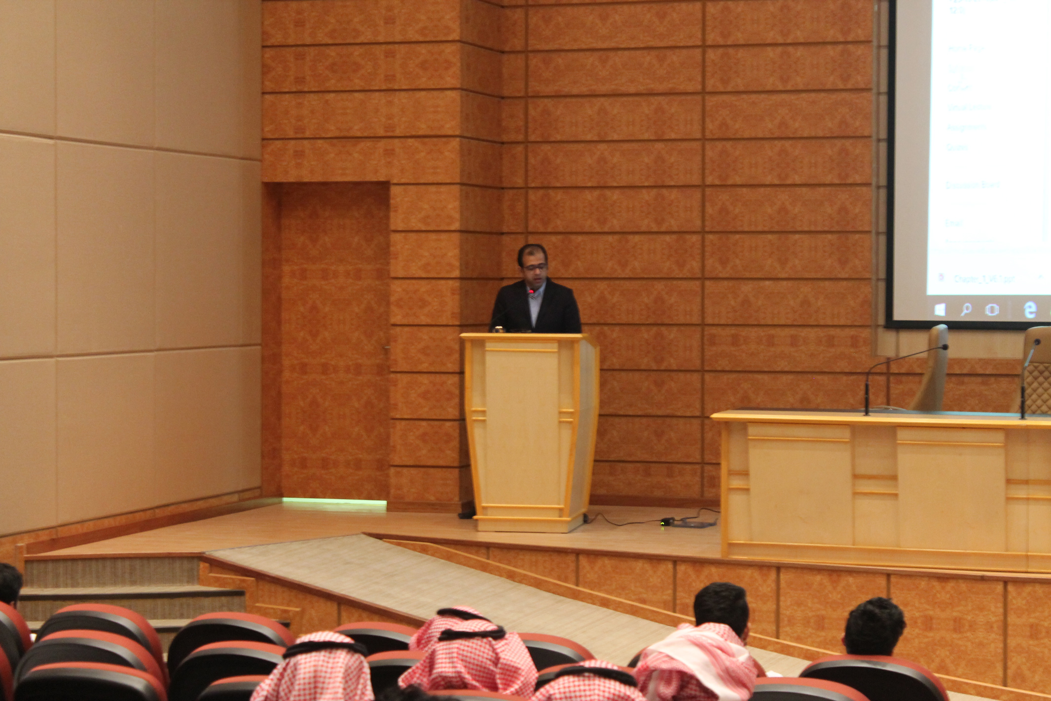 بناءً على توجيهات عميد كلية الهندسة الدكتور/ محمد بن سعيد القحطاني، نظمت وحدة تقنية المعلومات والتعلم الإلكتروني في الكلية، ورشة عمل لطلبة الكلية عن التعلم الإلكتروني (نظام البلاكبورد)، يوم الأحد 22/01/1438 الموافق 23/10/2016، حيث قدم المهندس/ محمد سرحان مدير نظام البلاكبورد في عمادة تقنية المعلومات والتعلم عن بعد في جامعة الأمير سطام بن عبدالعزيز، محاضرة تعريفية تحت عنوان " كيفية أستخدام البلاكبورد " موجهة على وجة الخصوص الى الطلبة الجدد، حيث شرح وبشكل تفصيلي تطبيقات هذا النظام وكيفية أستخدامها بالشكل الأمثل، حيث خصص أيضاً وقت للطلبة للمناقشة والاستفسار وقد تم الأجابة والتوضيح عن جميع تساؤلات واستفسارات الطلبة، وكان هناك تفاعلاً كبيراً من قبل الحضور.
