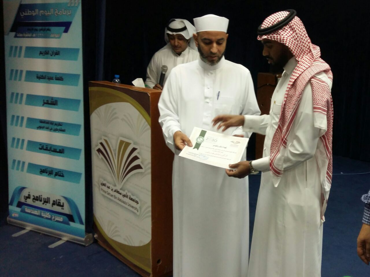 وذلك من خلال إقامة برنامج احتفالي في مسرح الكلية، والذي استهلت أولا فقراته بتلاوة عطرة من الذكر الحكيم ،