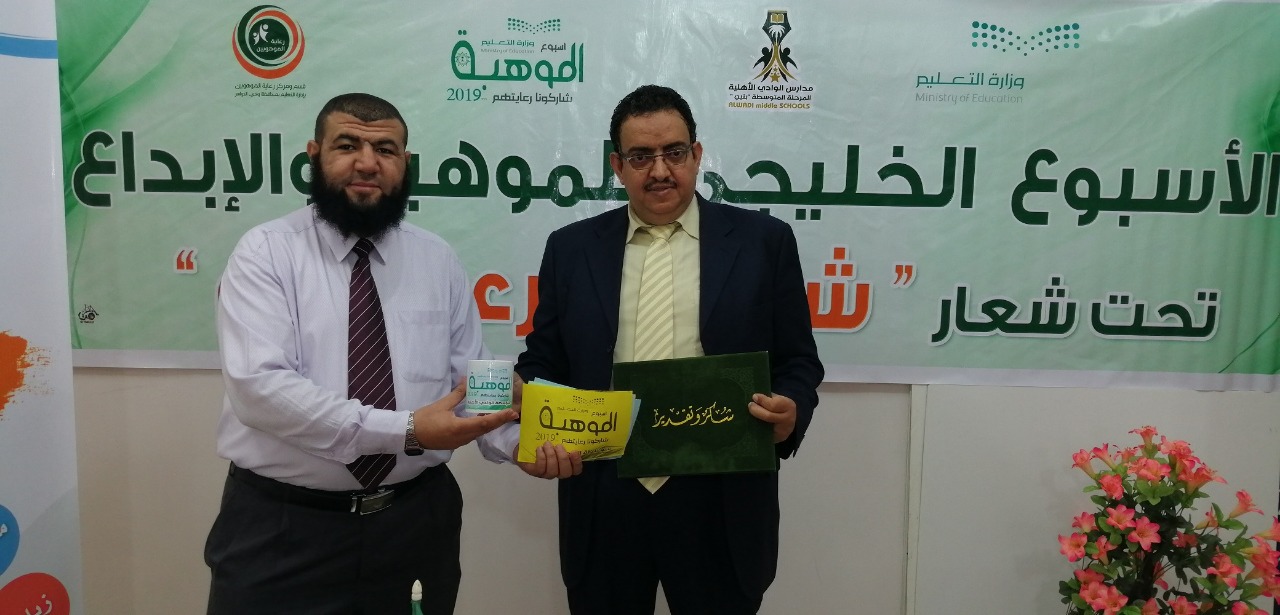 وفي ختام البرنامج التدريبي شكر قائد مدرسة متوسطة الوادي الأهلية الأستاذ / عايض بن عبدالله آل وديان ، الدكتور / عرفه المنسي ، على ما قدمه من معلومات قيمه تخدم الحس الإبداعي وعلى أسلوبه العلمي في أستنهاض الطاقات الإيجابية لدى الطلاب .