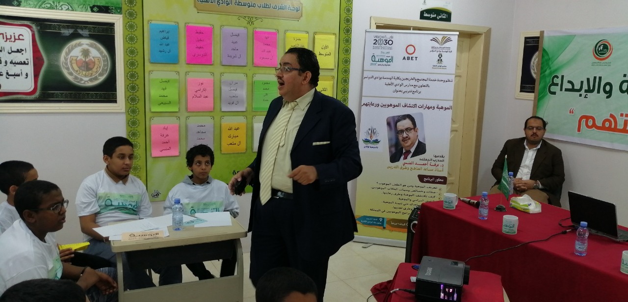 نظمت وحدة خدمة المجتمع والخريجين بكلية الهندسة بمحافظة وادي الدواسر بالتعاون مع مدارس الوادي الأهلية برنامج تدريبي بعنوان" الموهبة ومهارات اكتشاف الموهوبين ورعايتهم "