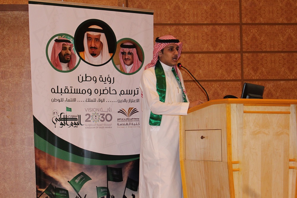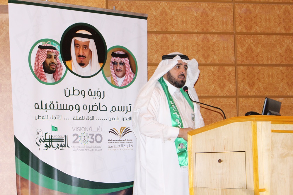 برعاية سعادة عميد كلية الهندسة بالخرج الدكتور محمد بن سعيد القحطاني، بدأت الكلية أولى فعاليات برنامجها للاحتفال باليوم الوطن للمملكة العربية السعودية السادس والثمانون، والذي يمتد إلى أربعة أيام بشعار مبني على رؤية وطن ترسم حاضره ومستقبله. يتميز برنامج الكلية بفعاليات متنوعة تهدف إلى استعراض منجزات الوطن، وكذلك تساهم في تعزيز الوحدة الوطنية إضافة إلى ما تنعم به المملكة من أمن وأمان بقيادة صاحب مسيرة الخير والعطاء خادم الحرمين الشريفين الملك سلمان بن عبدالعزيز وولي عهده الأمين وولي ولي العهد.