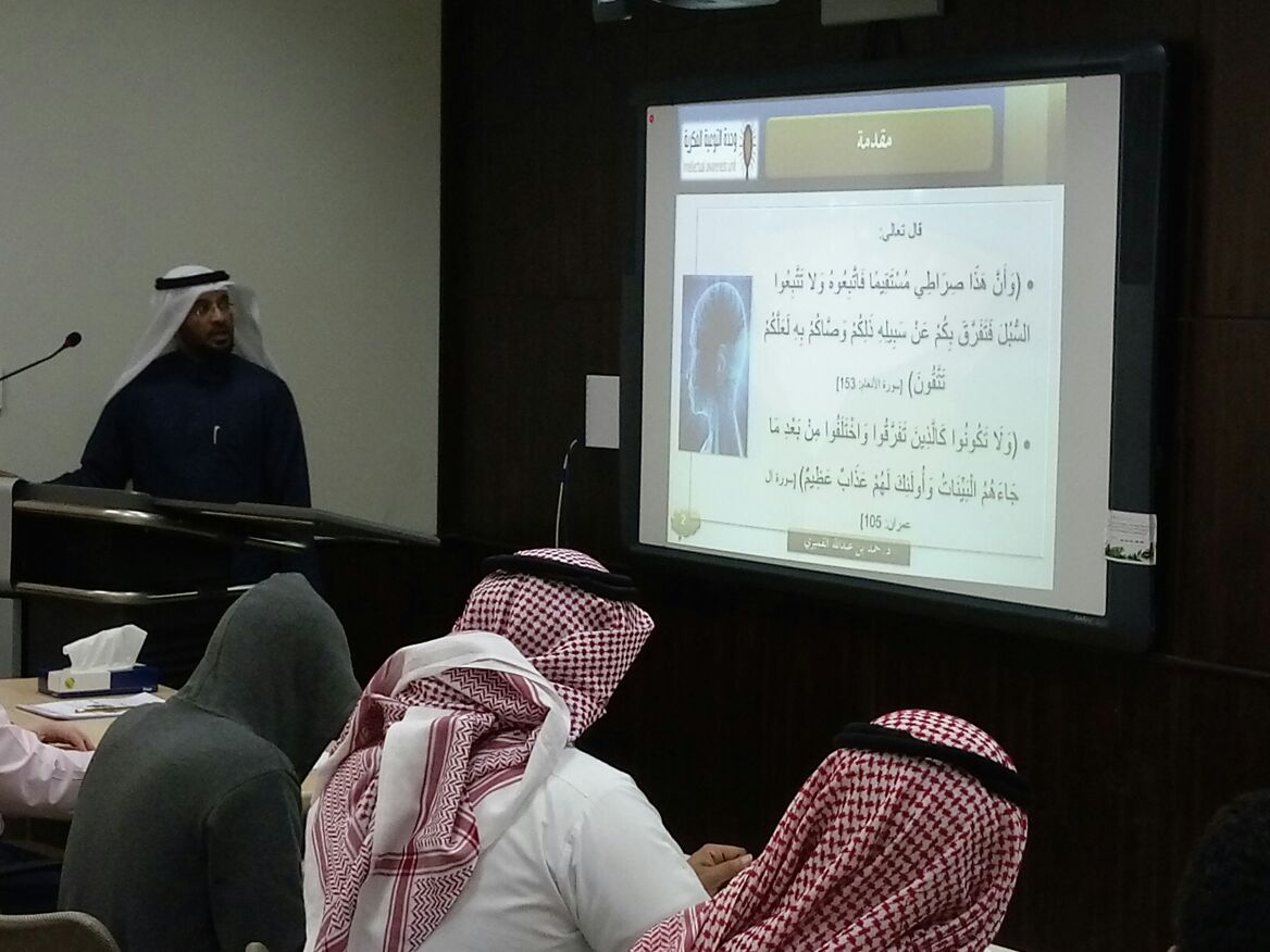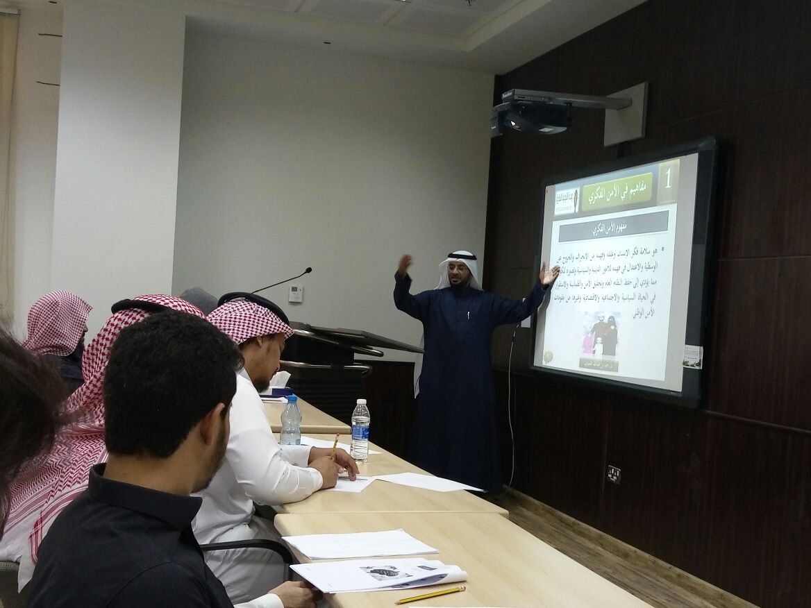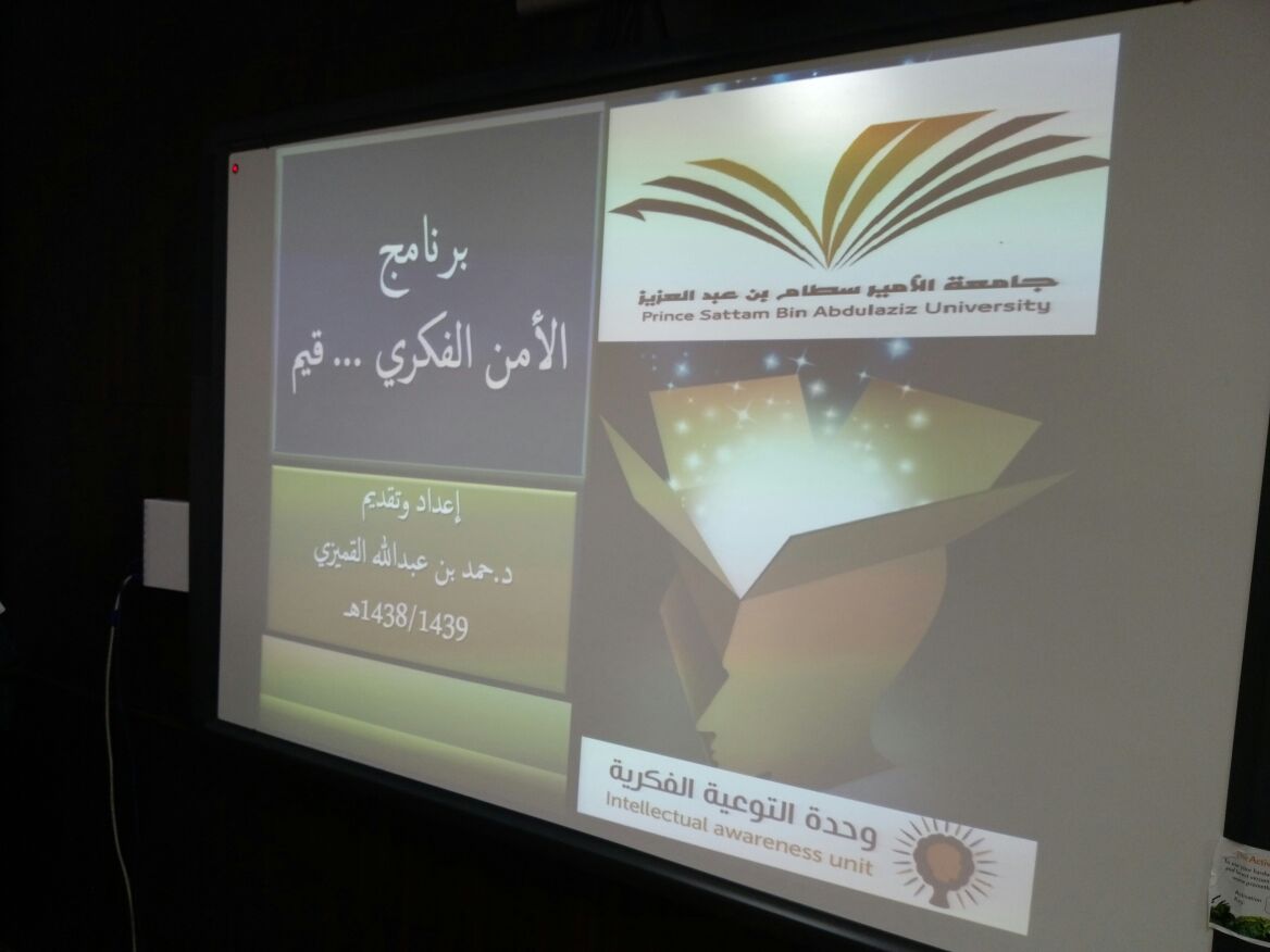 نظمت كلية الهندسة بجامعة الأمير سطام بن عبدالعزيز وبالتعاون مع وحدة التوعية الفكرية بالجامعة، برنامج دورة تدريبية تحت عنوان:(الأمن الفكري ... قيم) قدمها سعادة الدكتور/ حمد بن عبدالله القميزي أستاذ المناهج وطرق التدريس المشارك بالجامعة، حيث تطرق الدكتور القميزي لمفاهيم الأمن الفكري وتعريفاته والفرق بين الأمن الفكري والانحراف الفكري.