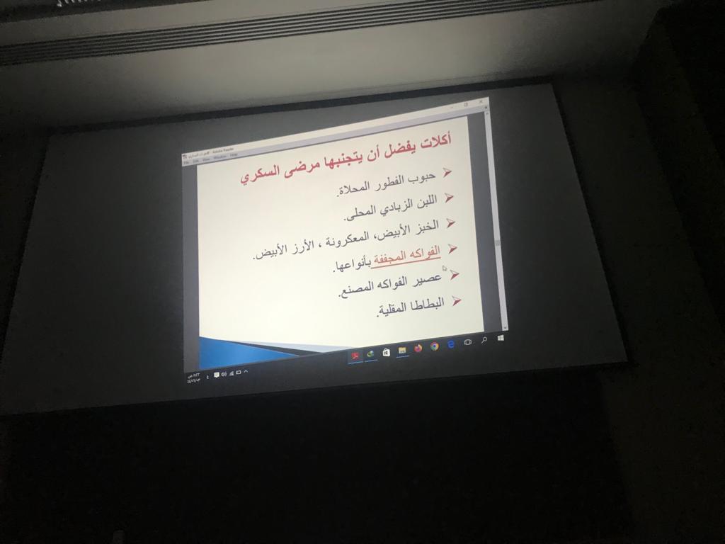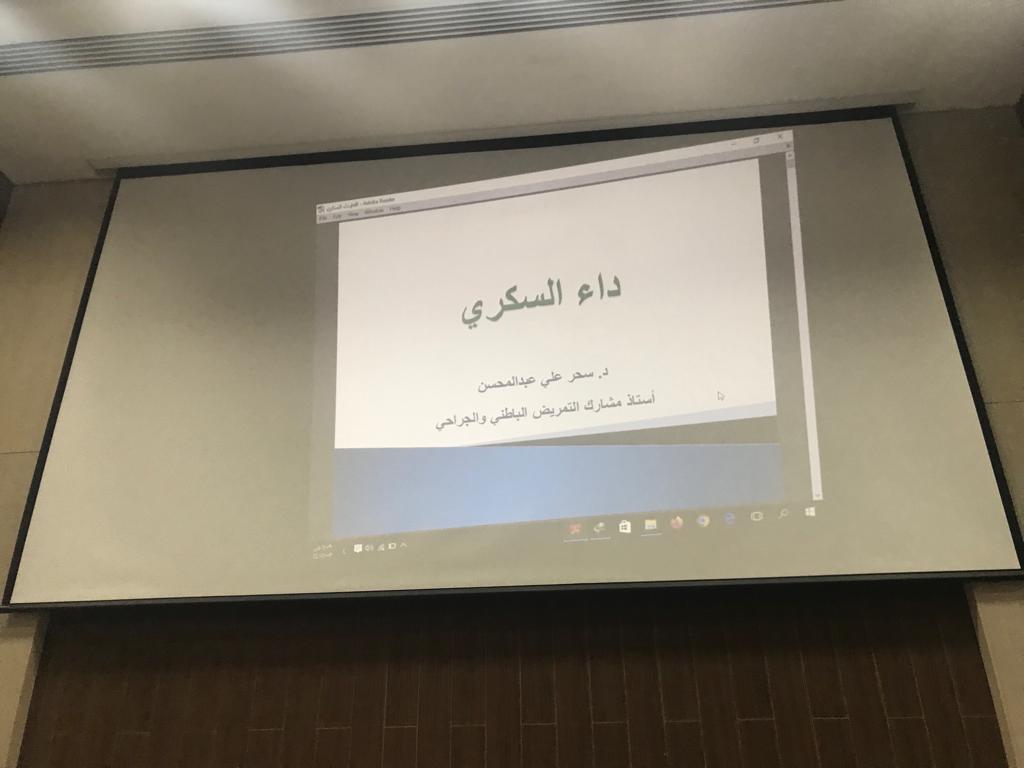 هدفت الفعالية إلى تقديم توعية للمشاركين عن مرض السكري وذلك من خلال المحاضرة التوعوية، قدمتها الدكتورة سحر علي عبدالمحسن (أستاذ مشارك التمريض الباطني والجراحي بقسم علوم التمريض) و أهم ما تناولته : تعريف المرض، أنواعه، الأعراض، العلاج، المضاعفات، الإسعافات الأولية لغيبوبة السكر، العناية بالقدم، وبعض المفاهيم الخاطئة عن السكري، إرشادات للمرضى، التغذية الصحية للمريض.