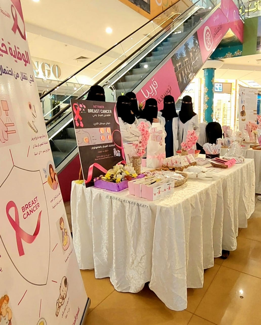 كما حثت العضوات والطالبات الحضور من زوار المجمع على ضرورة الكشف المبكر والاهتمام بالصحة العامة واتباع نمط حياة صحي من ممارسه الرياضة وتناول الطعام الصحي والرضاعة الطبيعية لمجابهة هذا المرض الخبيث.