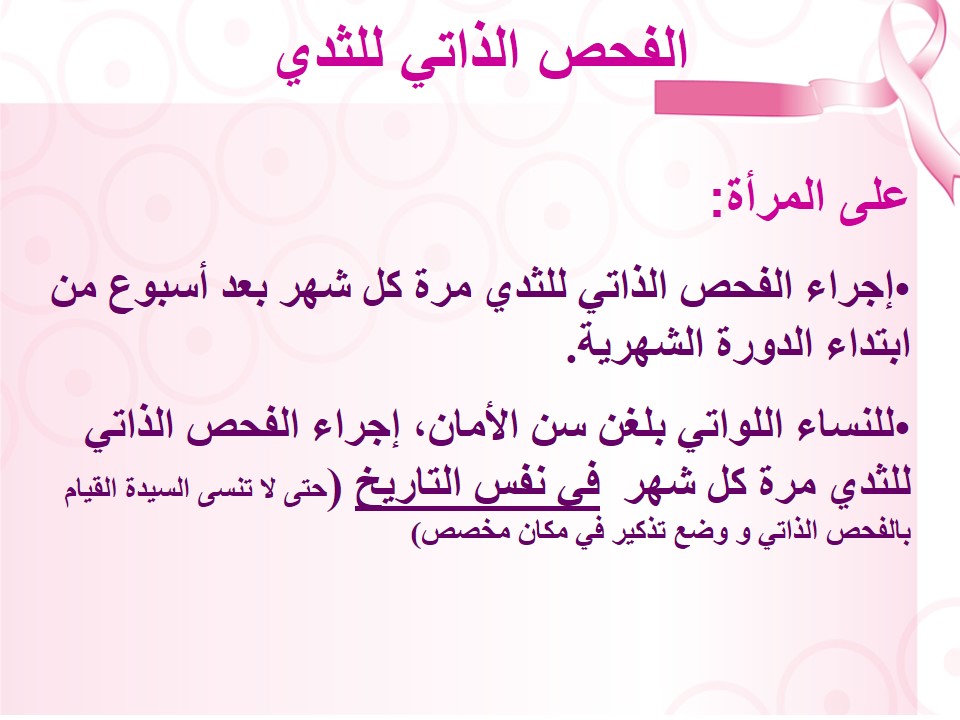 وهدفت الفعالية إلي توعية الطالبات والمنسوبات بعوامل الخطورة التي تزيد احتمال الإصابة بسرطان الثدي، وطرق الوقاية منه. حيث تناولت معدلات الانتشار عالميا وداخل المملكة، وأورام الثدي الحميدة، توعريف سرطان الثدي، والعوامل التي تزيد من احتمالية الإصابة بسرطان الثدي، وعوامل لاإرادية لا يمكن تفاديها، وعوامل من الممكن تفاديها، ووصف الثدي في مراحل مختلفة من العمر، والتغيرات التي يجب البحث عنها، مفاهيم خاطئة عن سرطان الثدي، والوقاية من سرطان الثدي، وتقليل مخاطر الاصابة بسرطان الثدي، وإرشادات الكشف المبكر لسرطان الثدي، ومتى يجب مراجعة الطبيب. وقد تم تطبيق الفحص الذاتي للثدي على نموذج من معمل النساء والتوليد.