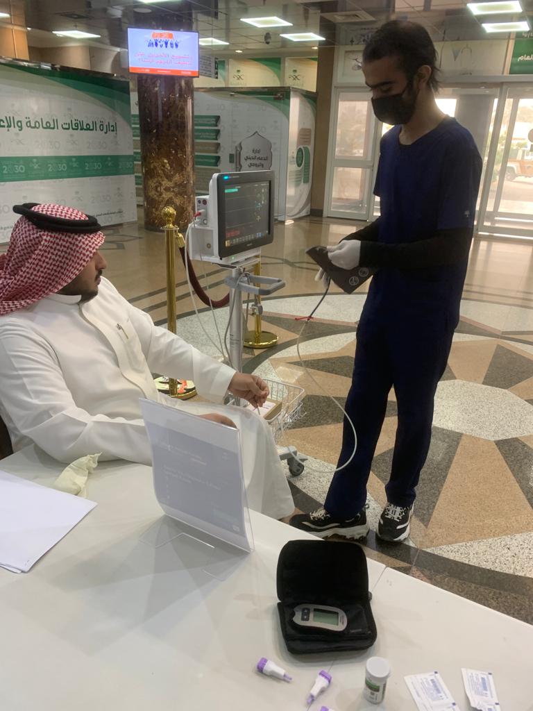 وقد قام الطلاب بقياس معدل الضغط، وقياس السكري، وقياس محيط الخصر، ورقم كتلة الجسم وتسجيلها وتقديم الوعي الصحي، والحث على اتباع السلوكيات السليمة لزوار المستشفى ، وذلك للوقاية من مضاعفات الأمراض المزمنة. وقد تم التنسيق للحملة مع المستشفى من قبل مشرفة وحدة العمل الطلابي (منسقة البرامج التطوعية) وخدمة المجتمع بالكلية الدكتورة عطيات محمد حسن.