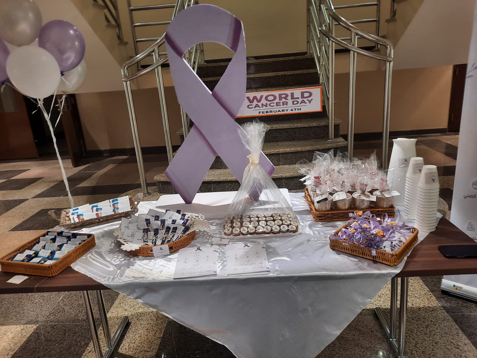 وقد هدفت الفعالية على رفع مستوى الوعي وتقديم تثقيف لدى الحضور عن مرض السرطان.