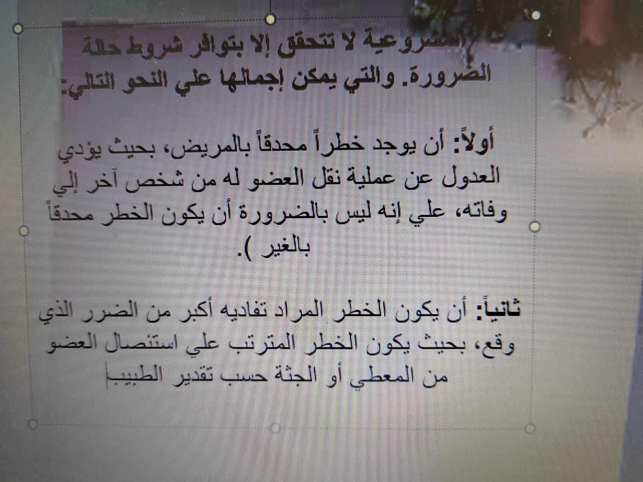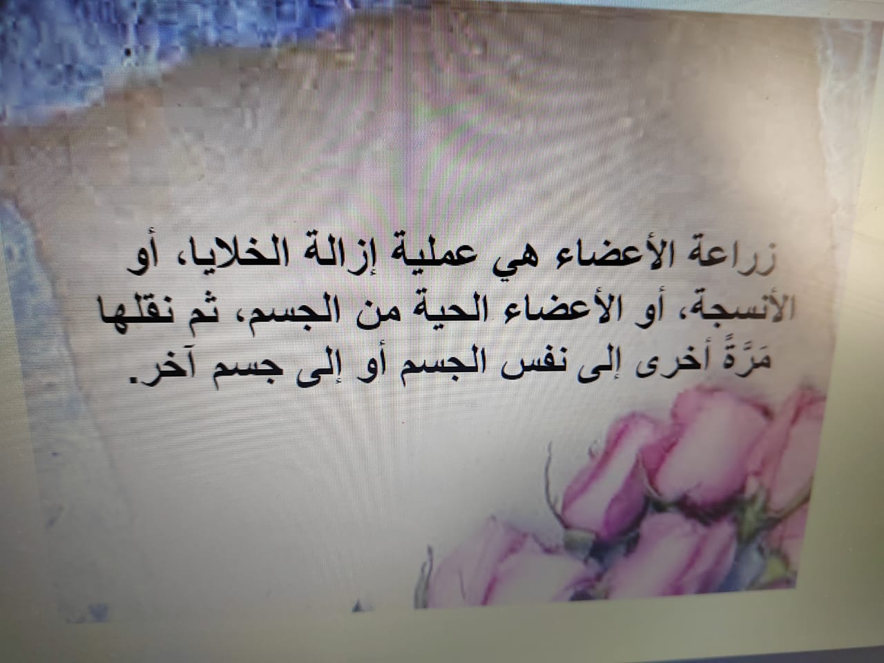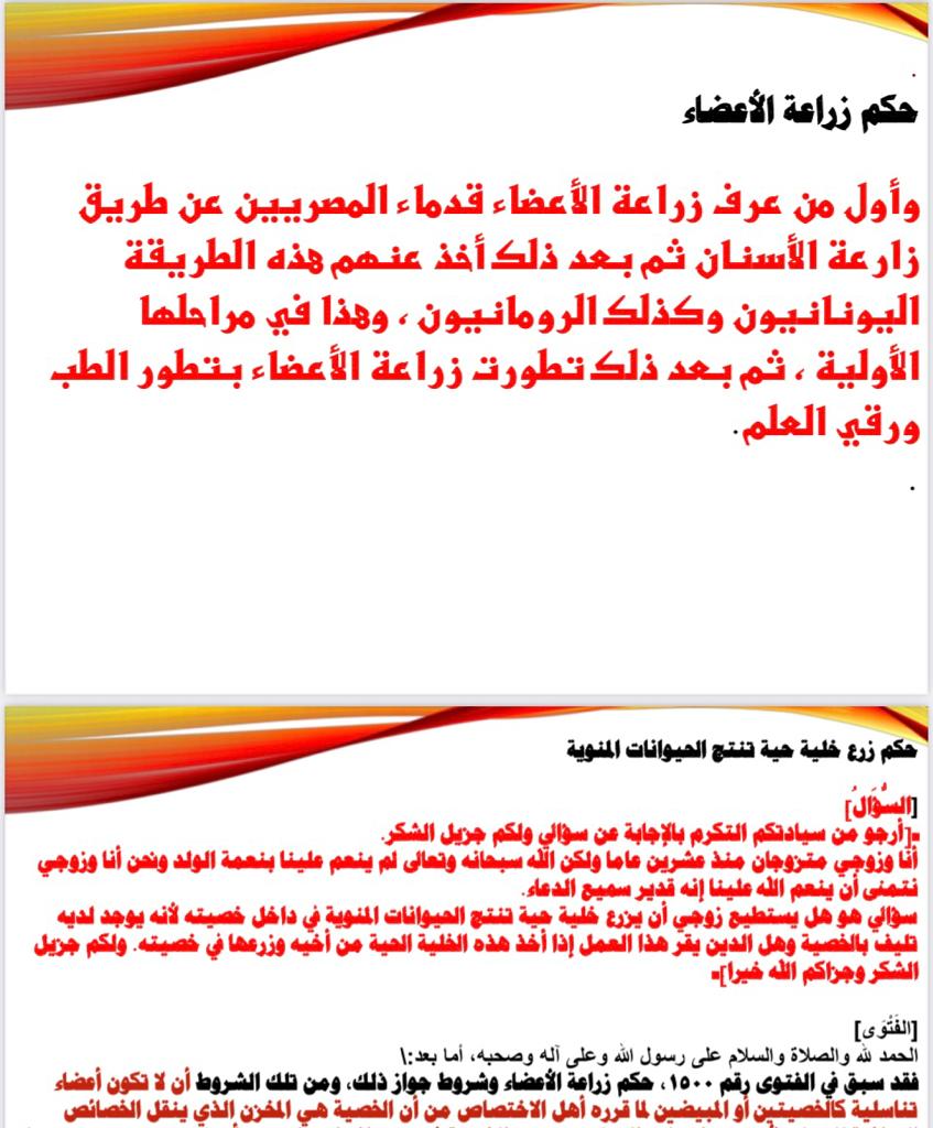 وقد تم تسليط الضوء على رأي و حُكم الشرع في زراعة الأعضاء البشرية من قِبل سعادة الدكتورة زينب السعيد - قسم الدراسات الإسلامية، حيث تطرقت إلى إجازة و تحريم بعض حالات زراعة الأعضاء البشرية، و قد أعطت أمثلة بُناءاً على ذلك.