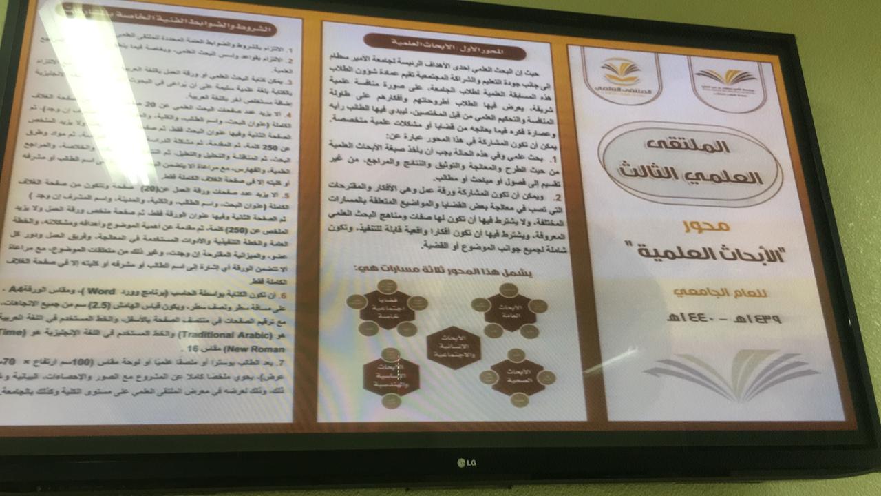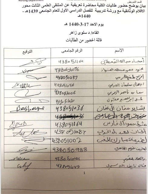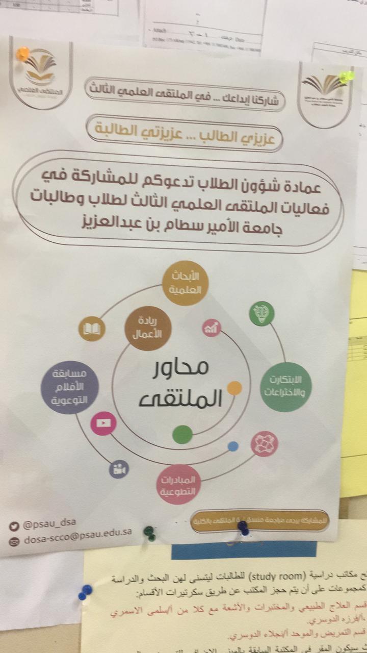 استمرارا للحملة الاعلامية لنشر ماهية الملتقى العلمي الثالث بكلية العلوم الطبية التطبيقية خلال الاسبوع الماضي بعد الإعلان عن الملتقى بجميع وسائل الاعلام بالكلية تم توزيع العرض المرئي الخاص بالملتقى على عضوات هيئة التدريس بالكلية لعرضه على للطالبات في أول خمس دقايق من المحاضرة وحث الطالبات على المشاركة بمحاور الملتقى المختلفة وتوقيع الطالبات على نموذج حضور للمحاضرة