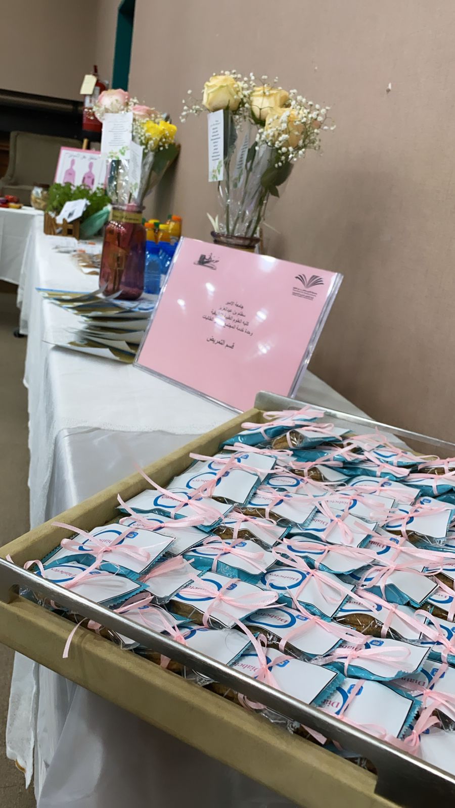 تنفيذًا لأهدافها الاستراتيجية، نظمت وحدة خدمة المجتمع بكلية العلوم الطبية التطبيقية وبالتعاون مع الانشطة الاجتماعية والثقافية بكلية هندسة وعلوم الحاسب ورشة عمل تثقيفية وركن توعوى بعنوان "ارشادات ونصائح للتعامل مع الامراض المزمنه السكرى والضغط" حيث اوضحت د.اميرات على السبيلى خلال الورشة كل ما يتعلق بمرض السكرى والضغط من حيث الأسباب و الأعراض وكيفية التعامل والسيطرة على المرض،وتخلل الورشة ركن توعوي يحتوي على بروشورات و مطويات و توزيعات عن مرض السكري و الضغط، ولاقت الورشة والركن التوعوي حضورًا ايجابيًا من طالبات ومنسوبات الكلية.