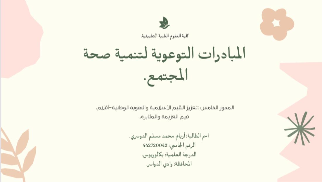 برعاية عميد كلية العلوم الطبية التطبيقية المكلف فرع الوادي سعادة الدكتور سلطان بن مسفر آل ربيع ، وتوجيه وكيل الكلية للشؤون التعليمية والأكاديمية مع متابعة مساعدة العميد لشؤون الطالبات ، نظمت مشرفة وحدة العمل الطلابي و منسقة الملتقى العلمي الطلابي "شطر الطالبات "بالكلية فعالية "التحكيم العلني لمشاركات الطالبات بالملتقى العلمي الطلابي 1444هـ، وذلك يوم الثلاثاء الموافق 1444/6/10 هـ الساعة 12 ظهرًا بمسرح الكلية.