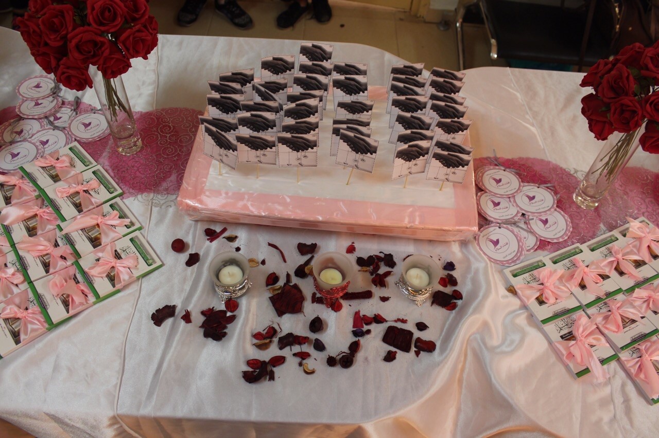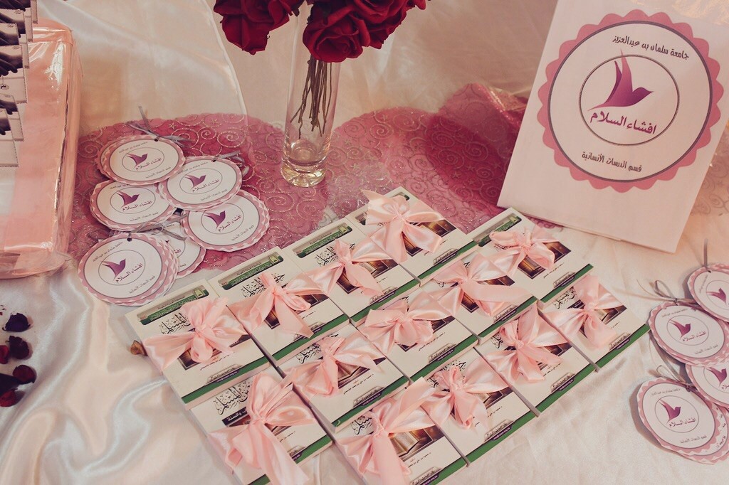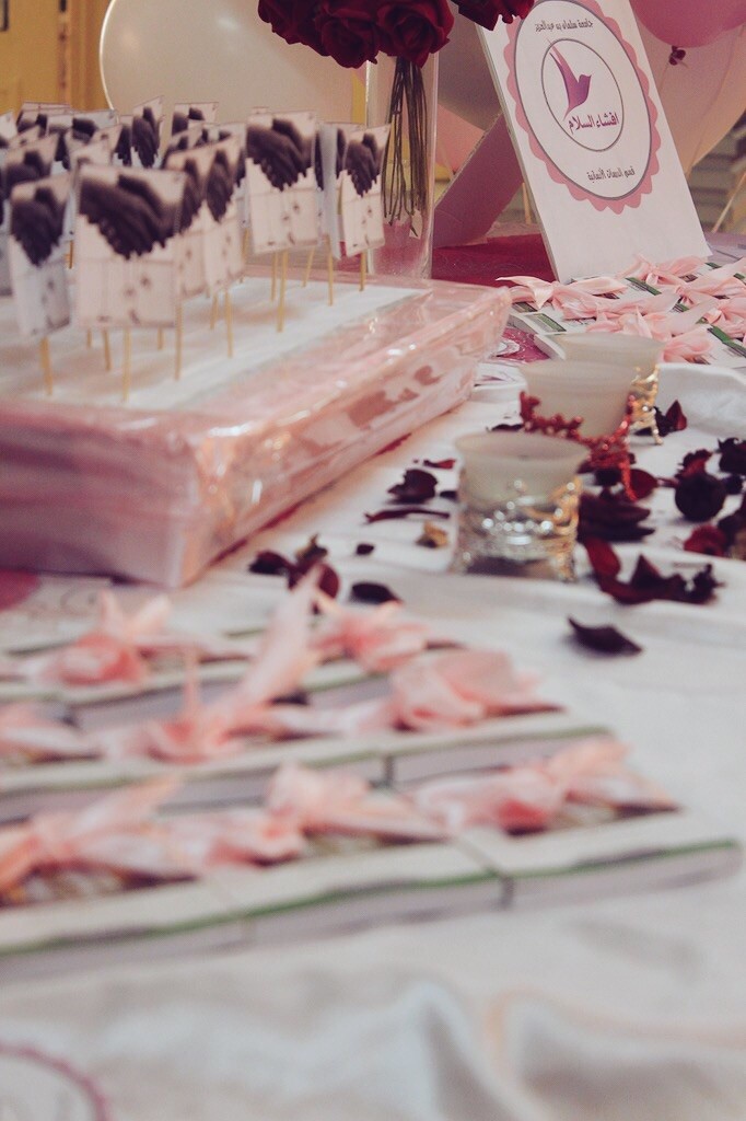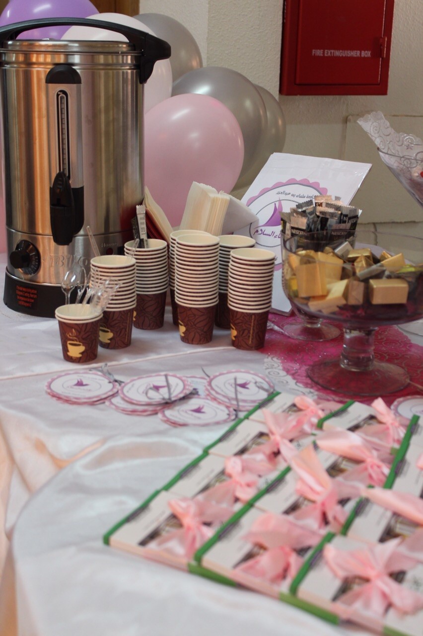 وتم وضع ركن جانبي عرض عليه مطويات بأشكال منوعة وكتيبات صغيرة هدايا للحضور وتم وضع ضيافة لجميع الحاضرات.