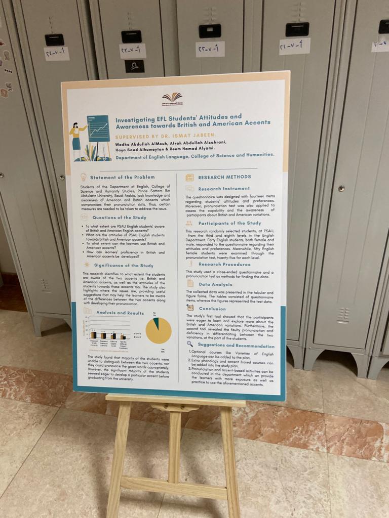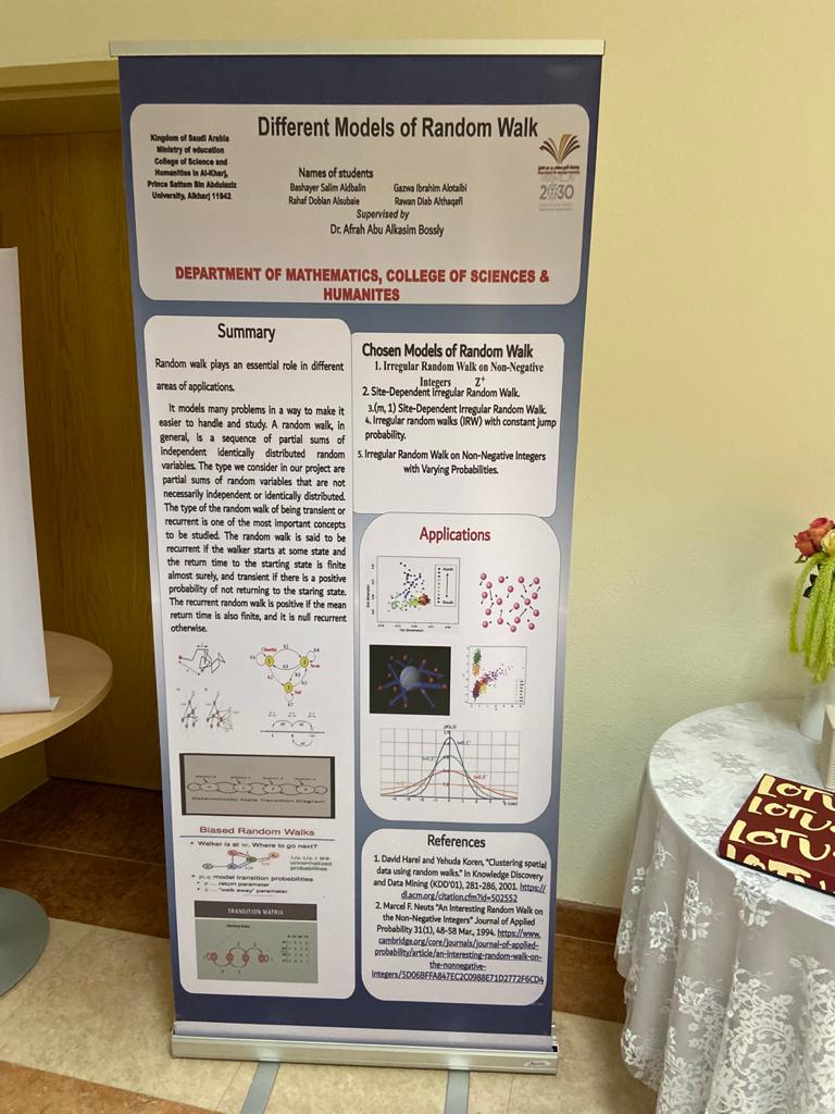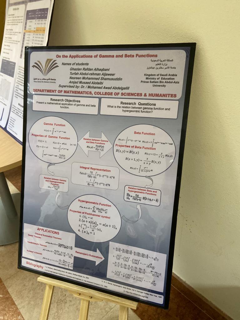 نظمت وحدة الخريجات متمثلة بلجنة مشاريع التخرج بكلية العلوم والدراسات الإنسانية بالخرج (طالبات) يوم الاثنين الموافق 5/4/1441هـ فعالية الملصقات العلمية Poster Day)) برعاية وكيلة الكلية الدكتورة نوال عبد العزيز الفهيد، وقد حضر الفعالية رئيسات الأقسام وعدد من أعضاء هيئة التدريس والطالبات وكانت هناك مشاركات عدة متميزة لملصقات مشاريع البحث لأقسام الكلية وقمن الطالبات المشاركات باستعراض الملصقات من حيث أهدافها واهميتها ومشكلاتها البحثية وصولًا إلى النتائج المستخلصة وقابلية تطبيقها, ومن الجدير بالذكر بأنه تم المشاركة بعشرة ملصقات من قسم الرياضيات بإشراف عدد من أعضاء هيئة التدريس وثلاث ملصقات من قسم الكيمياء وملصقين من قسم اللغة الإنجليزية وملصق من قسم الفيزياء .