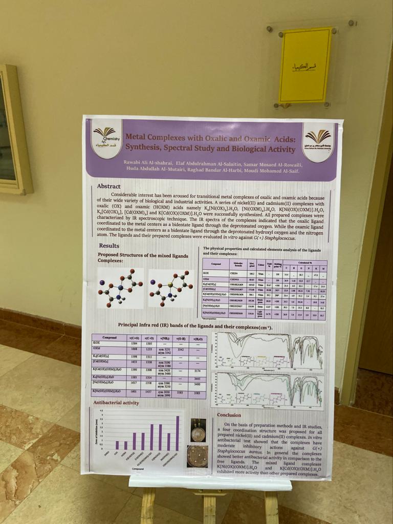 - المركز الثاني مشروع بحث بقسم الكيمياء بإشراف الدكتورة صفاء كايد.