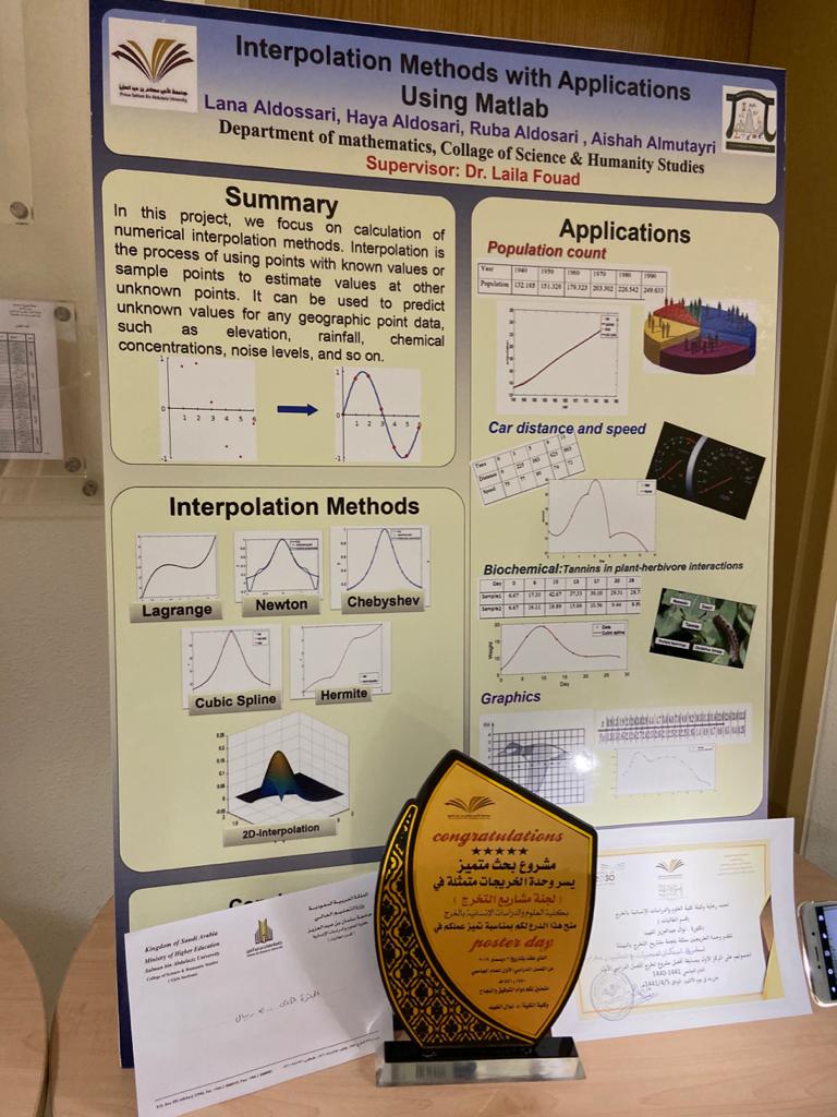- المركز الأول من نصيب مشروع بحث بقسم الرياضيات بإشراف دكتورة ليلى فؤاد.