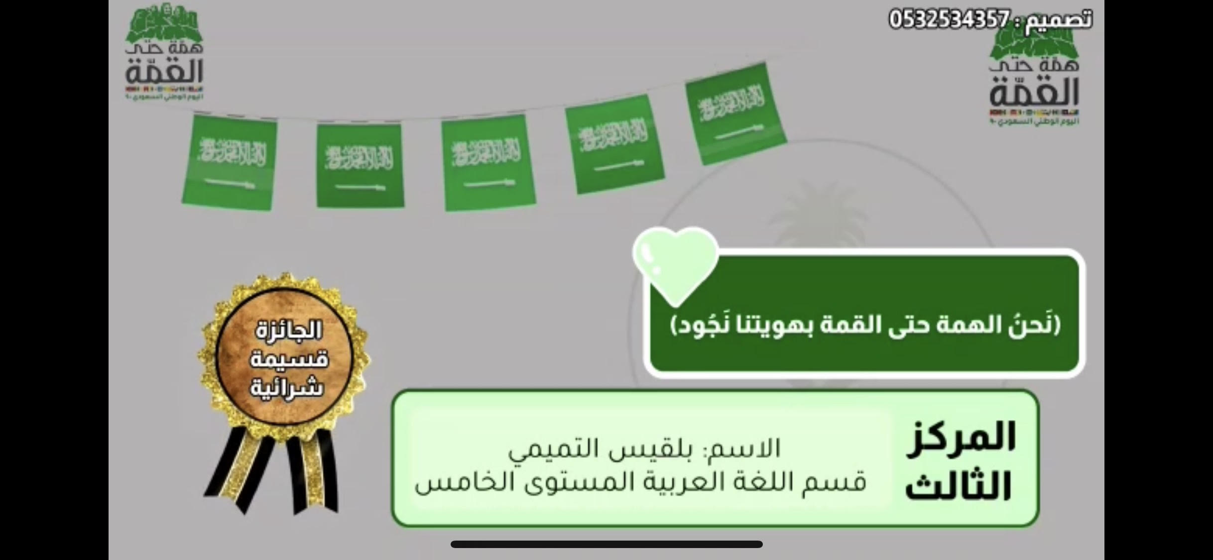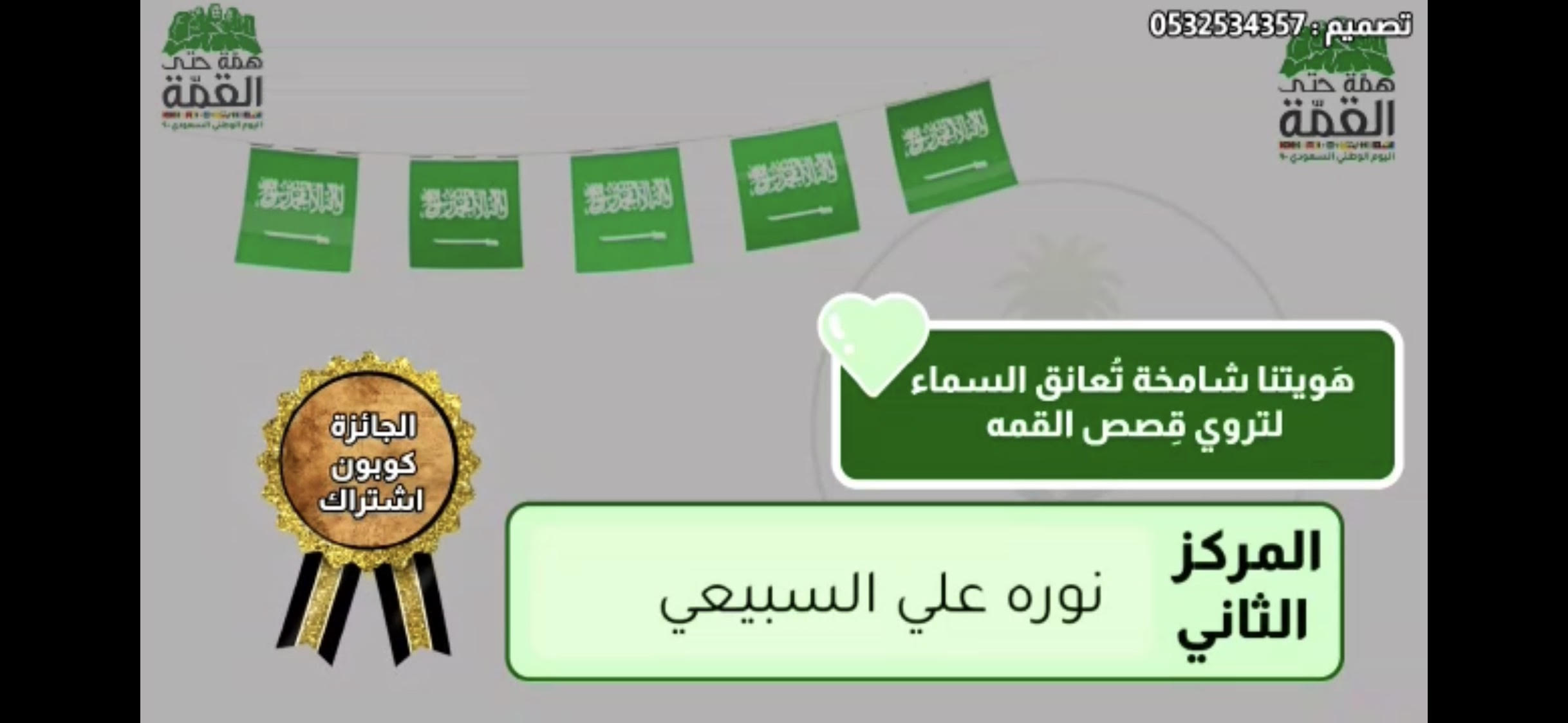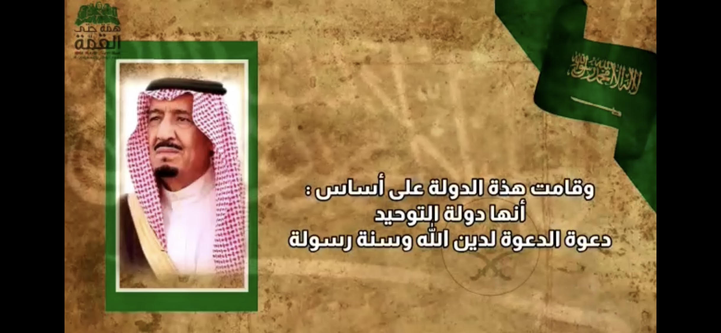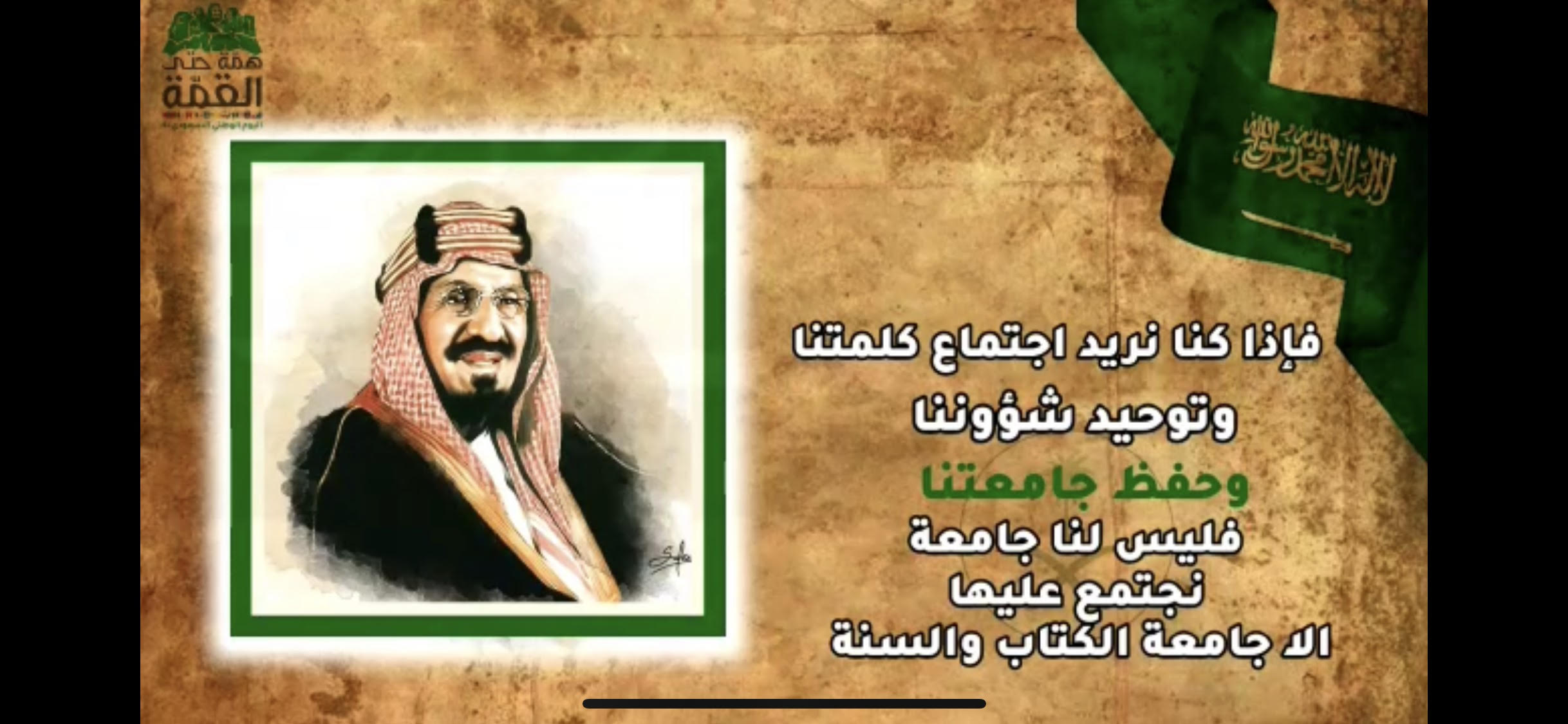نحو قمة حتى الهمة، تعتلي الهمم نحو القمم. تحت قيادة عميد كلية العلوم والدراسات الإنسانية بحوطه بني تميم الدكتورة حصة بنت سعود الهزاني. أقامت وحدة إشراقة وطن احتفلا ًباليوم الوطني 90 تحت إشراف مشرفة الوحدة ا/منال الدحيم تشد به الهمم في جو افتراضي يعلو بالصوت ولو كانا بعيداً( ارفع الخفاق أخضر) لتنطلق فعاليات الاحتفال الوطني ليومين متتاليين. يوم الأحد الموافق: 1442/2/3هــ. في مونتاج مرئي بدأ بالسلام الملكي تلاه مرور جائحة كورونا في ظل الاحتفال باليوم الوطني ٩٠، ومن ثم عرض ملوك المملكة العربية السعودية على راسهم مؤسس البلاد الملك عبد العزيز آل سعود طيب الله ثراه ومن ثم الفخر والعزة بالانتماء إلى الوطن. تلا ذلك كلمة عميدة الكلية التي سميت بأمجاد هذا الوطن ودور القيادة الحكيمة وواجبنا تجاه هذه المعطيات، ومن ثم انطلاقة في التطور والرقي الذي وصل الوطن له بالهوية الوطنية وبث الوعي بها عن طريق إقامة مسابقة لأجمل تعليق لتجد من الطالبات قبولاً وتنافساً، وتم ترشيح الطالبات الفائزات. وفي الختام تهاني وشكر لخادم الحرمين الشريفين وولي عهده على ما وصلت له الهوية الوطنية في ظل التأسيس للعام التسعون. لينطلق بثها عن طريق مواقع التواصل المتعددة حيث لاقي أصدقاء الانتماء والحب والفخر لهذا الوطن. وفي اليوم التالي يوم الاثنين الموافق 1442/2/4هـ.حيث قدمت دورة بعنوان صانعات المجد في وطن المعرفة للدكتورة هبة الله الويشي أستاذ مساعد نظم المعلومات حيث تناولت الدورة تاريخ اليوم الوطني السعودي، ومجتمع المعرفة التعليم ، و رؤية 2030عالم فوكا وقد تتالت الأفكار الوطنية في سمو صوتي من قبل الدكتورة.