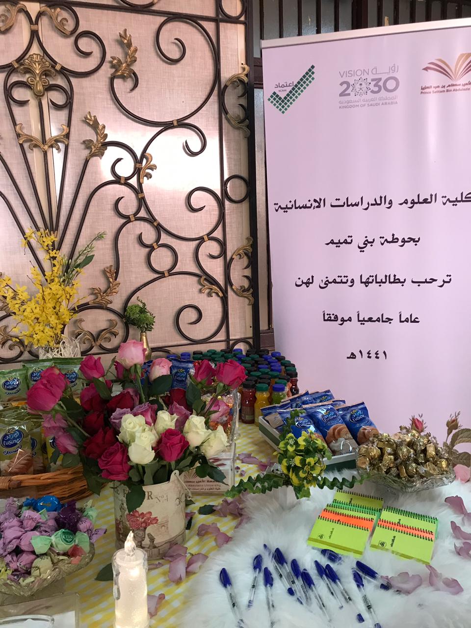 مع اشراقة صباح يوم الاحد الموافق ١٤٤١/١/٢ هـ، وبداية توافد الطالبات تعلوهن الهمة والتفاؤل في مستهل عام دراسي جديد، نظمت كلية العلوم والدراسات الإنسانية بحوطة بني تميم استقبال ترحيبي للطالبات في مدخل الكلية عند الساعة التاسعة صباحاً. كان في مقدمة الحضور سعادة عميدة الكلية الدكتورة حصة بنت سعود الهزاني ووكيلاتها والطاقم الاداري لاستقبال الطالبات والترحيب بهن وتوزيع الورود والحلوى والإفطار الصباحي. كما هنأت العميدة طالبات ومنسوبات الكلية بمناسبة حصول الجامعة على الاعتماد المؤسسي الكامل ووضحت ان الجامعة سخرت كافة الامكانيات من أجل استقبال وتعليم جيل قادر على المساهمة في بناء المجتمع في كل المجالات كما قدمت كلمات تشجيعية للطالبات المستجدات لبث روح الايجابية والحماس بينهن وتهيئتهن لانطلاقة المرحلة الجامعية.