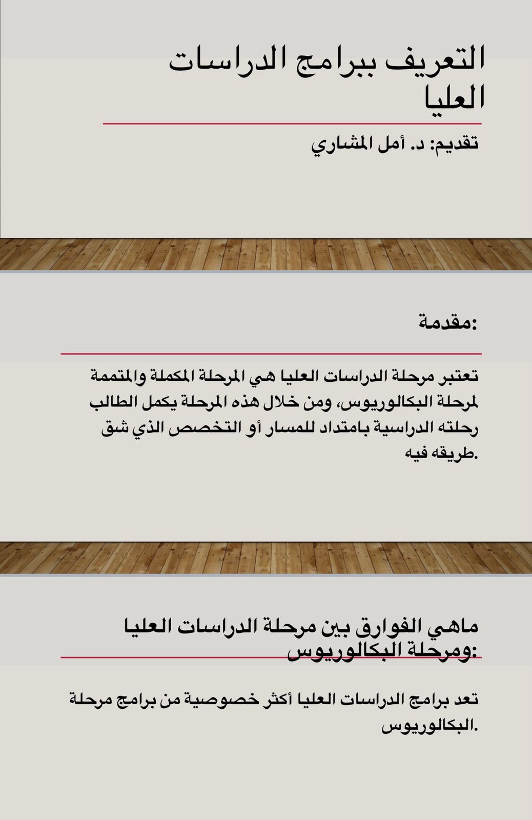 تعتبر مرحلة الدراسات العليا من أهم المراحل التي يسعى إليها الكثيرون ويرغب كل باحث في الحصول عليها، لما تقدمه تلك المرحلة من تطوير للمهارات والقدرات واكتساب للمعرفة والثقافة، ولأهمية ذلك، وتحت رعاية عميدة كلية العلوم والدراسات الإنسانية بحوطة بني تميم د. حصة بنت سعود الهزاني قدمت لجنة الإرشاد المهني التابعة لوحدة الخريجات بإشراف: أ. ريم الحضيف دورة تدريبية بعنوان: التعريف ببرامج الدراسات العليا. تقديم د. أمل المشاري، وذلك في يوم الأربعاء الموافق: ١٤٤٣/٨/٢٧هـ الساعة ٧:٠٠ مساءً على نظام البلاك بورد، وهدفت هذه الدورة إلى تعريف الطالبات ببرامج الدراسات العليا وشروط القبول فيها وكيفية التقديم عليها، لتتمكن الطالبة بعد تخرجها الالتحاق بهذه البرامج من خلال اتباع الشروط واختيار المسار المناسب لتخصصها.