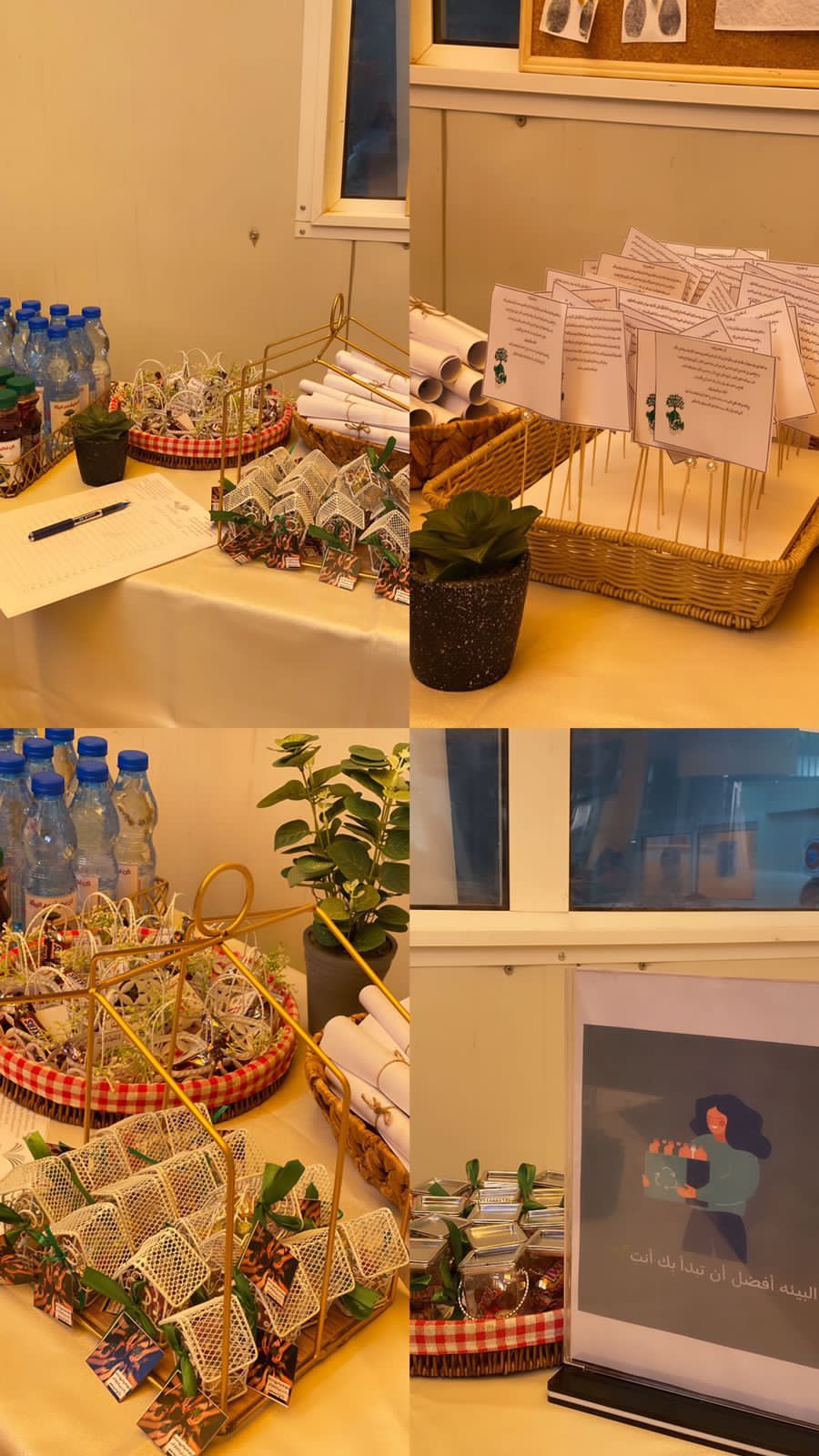 ركن توعوي عن أهمية المحافظة على البيئة في ساحة الكلية احتوى على توزيعات توضح طرق المحافظة على البيئة ومنهج الإسلام في المحافظة على البيئة وتعزيز السلوكيات الإيجابية تجاه البيئة وقد حضر الفعالية عدد من رئيسات الأقسام وأعضاء التدريس ومنسوبات وطالبات الكلية.