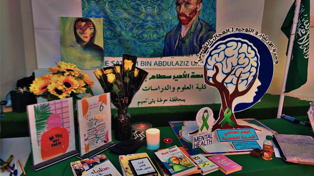 تحت رعاية عميدة كلية العلوم والدراسات الإنسانية بحوطة بني تميم د. حصة بنت سعود الهزاني. أقامت وحدة التوجيه و الإرشاد (المجال النفسي ) بالكلية بالاشتراك مع وحدة العمل الطلابي فعالية " اليوم العالمي للصحة النفسية " وذلك في يوم الأحد الموافق 1445/3/30هـ في مسرح الكلية.