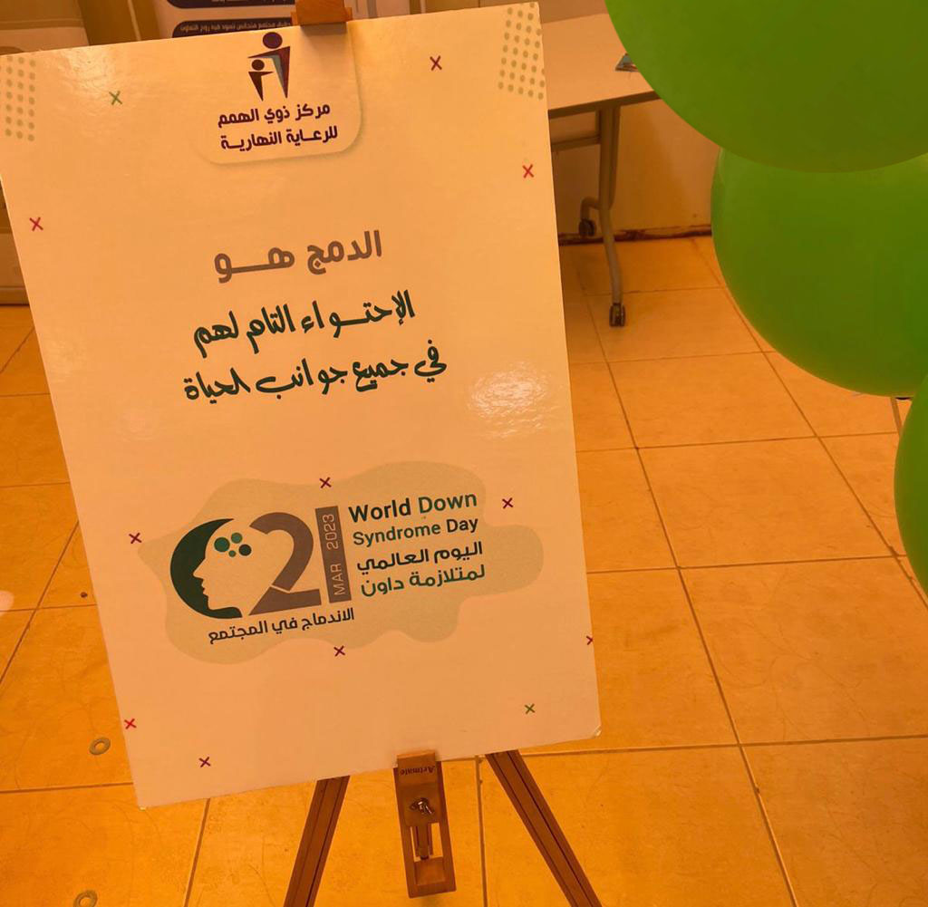 تُمثل المسؤولية المجتمعية للمؤسسات ركنًا أساسيًا من أركان رؤية المملكة 2030 وأحد أهداف الجامعة الاستراتيجية وبناء على ذلك وتحت رعاية كريمة من عميدة كلية العلوم والدراسات الإنسانية بحوطة بني تميم الدكتورة حصة بنت سعود الهزاني استضافت إدارة المسؤولية المجتمعية مركز ذوي الهمم للرعاية النهارية بالتعاون مع مستشفى حوطة بني تميم لتفعيل اليوم العالمي لمتلازمة داون تحت شعار (معاً وليس لأجلهم) في يوم الثلاثاء الموافق 1444/8/29هـ. وضح من خلاله الجوانب النفسية والاجتماعية والصحية لمصابي متلازمة داون، وأثر الاندماج في المجتمع عليهم، واشتمل اللقاء على توزيعات وزعت على أطفال المركز في أرجاء الكلية.
