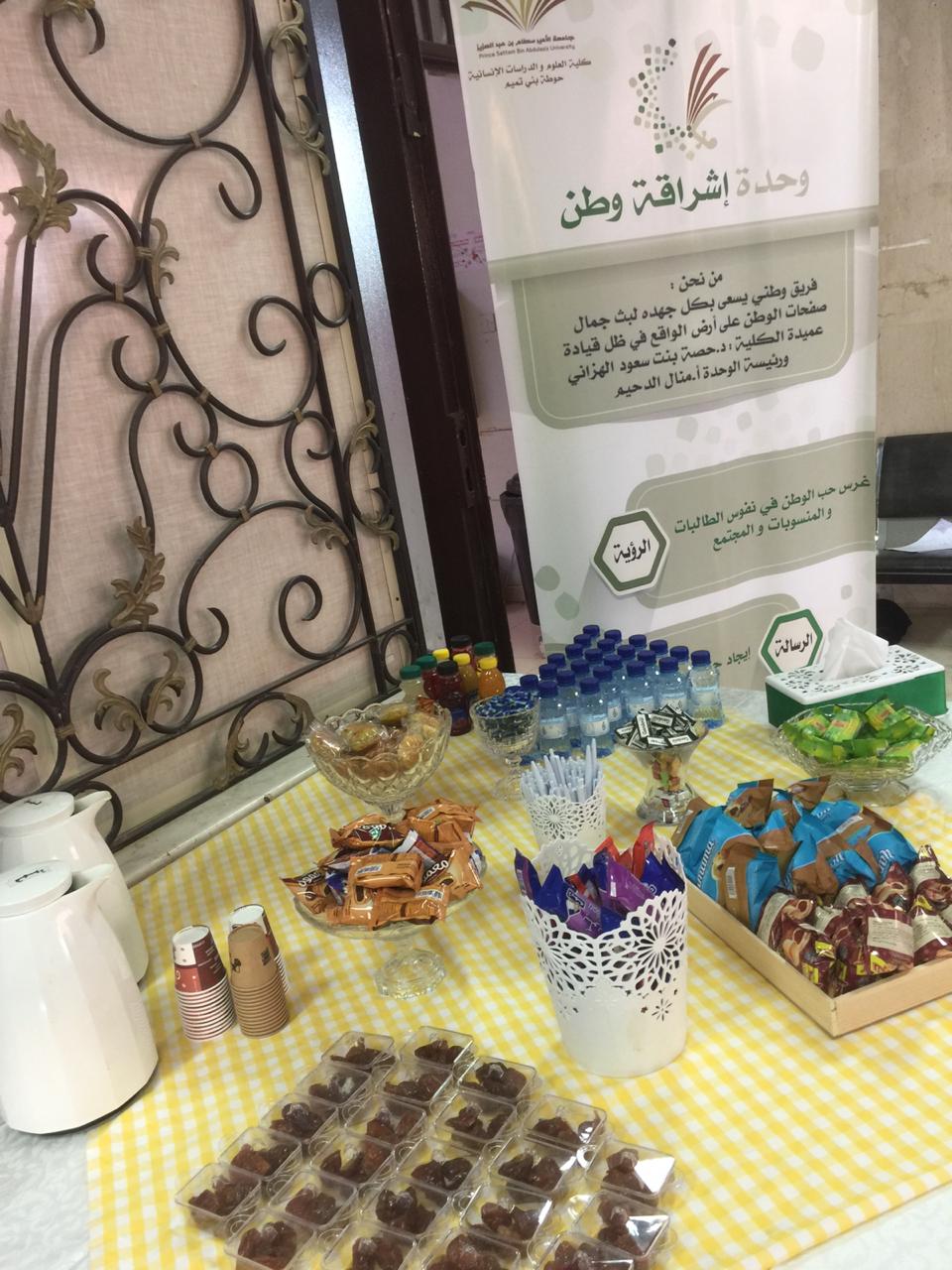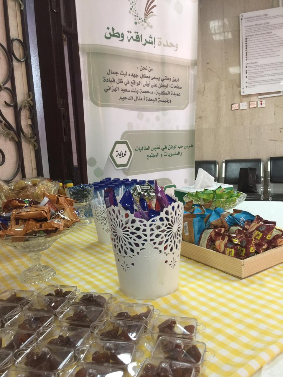 في صباح يوم الثلاثاء الموافق :1441/4/20هـ صباح يشرق بالإنجاز مغرداً للعلم وأهله تتهاتف جهود الطالبات نحو قاعات الاختبارات سامية للنجاح ومعتلية للفلاح لتسعد وحدة إشراقة وطن تحت قيادة عميدة الكلية د/حصة بنت سعود الهزاني لمشاطرة الطالبات ببسمات الصباح وتجهيزات تهيئ الطالبة لجو الاختبارات ، فقد انطلقت الوحدة بركن مع إطلالة هذا العام 1441هـ فيه بعضا من المسرات لكل طالبة للعلم، وذلك بتقديم المشروبات الساخنة والباردة والبسكويت للطالبات قبل دخولهن للاختبار. وقد وجد الركن ثراء وبهجة على نفوس الطالبات سائلين الله لهن التوفيق والسداد وهمم تسمو نحو القمم.