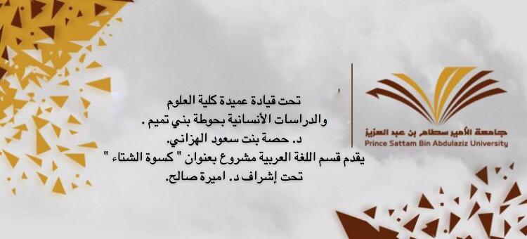 أقامت شعبة العمل التطوعي بوحدة النشاط الطلابي ووحد التدريب وخدمة المجتمع بكلية العلوم والدراسات الإنسانية بحوطة بني تميم مشروع (كسوة الشتاء) تحت قيادة عميدة الكلية سعادة الدكتورة/ حصة بنت سعود الهزاني. وذلك يوم الأحد الموافق:1441/4/11هـ. نُفذ البرنامج من قِبل طالبات قسم اللغة العربية وقسم الإنجليزي. حيث قمنا بتوزيع حقائب الكسوة للعمالة والمحتاجين، وذلك لمد جسور التواصل والتراحم والتكافل الاجتماعي تجسيدًا وترسيخاً للقيم الإسلامية السمحة.
