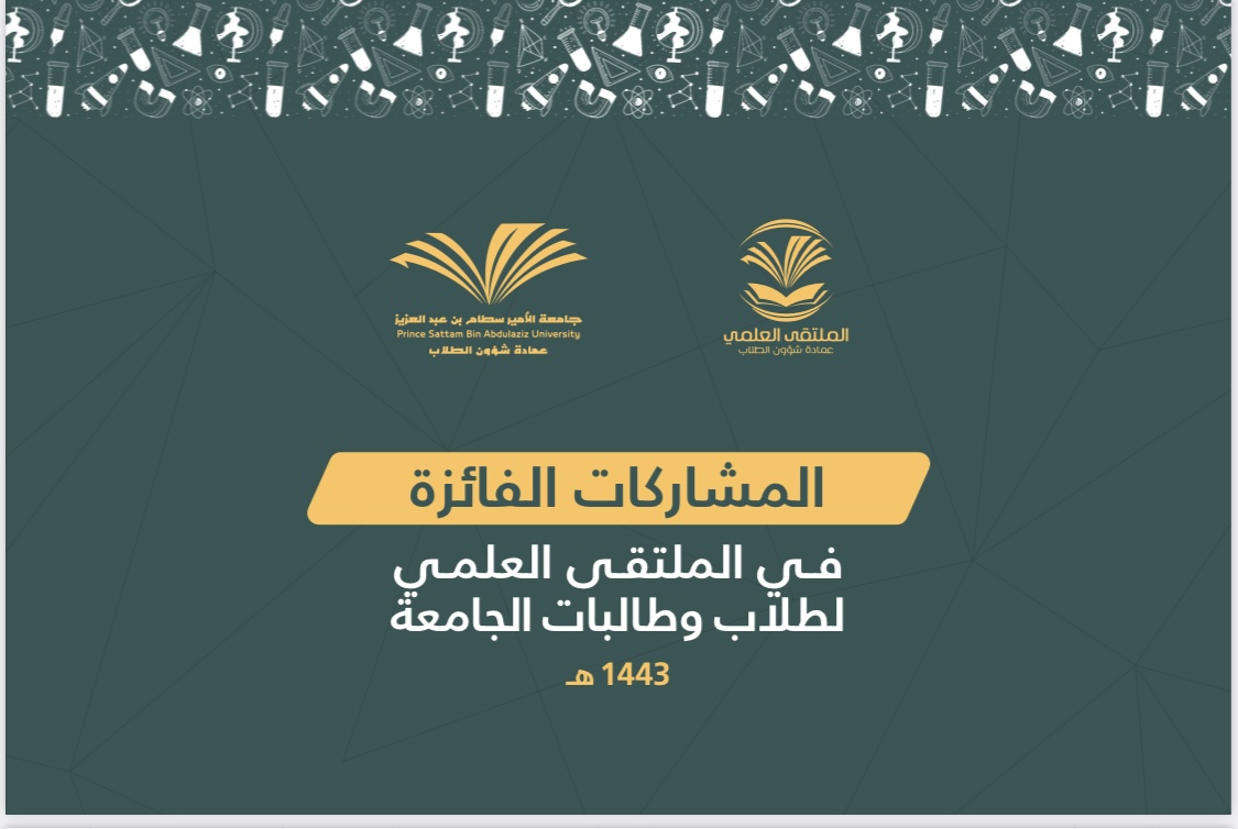 بعد تنافس شريف بين مشاركات طلاب وطالبات جامعة الأمير سطام بن عبد العزيز على مستوى الكليات ومستوى الجامعة وتحت رعاية سعادة رئيس الجامعة أ.د. عبد الرحمن بن هلال الطلحي أقيم يوم الأربعاء الموافق: 1443/8/27هـ حفل ختام الملتقى العلمي لطلاب وطالبات الجامعة للعام ١٤٤٣ هـ.