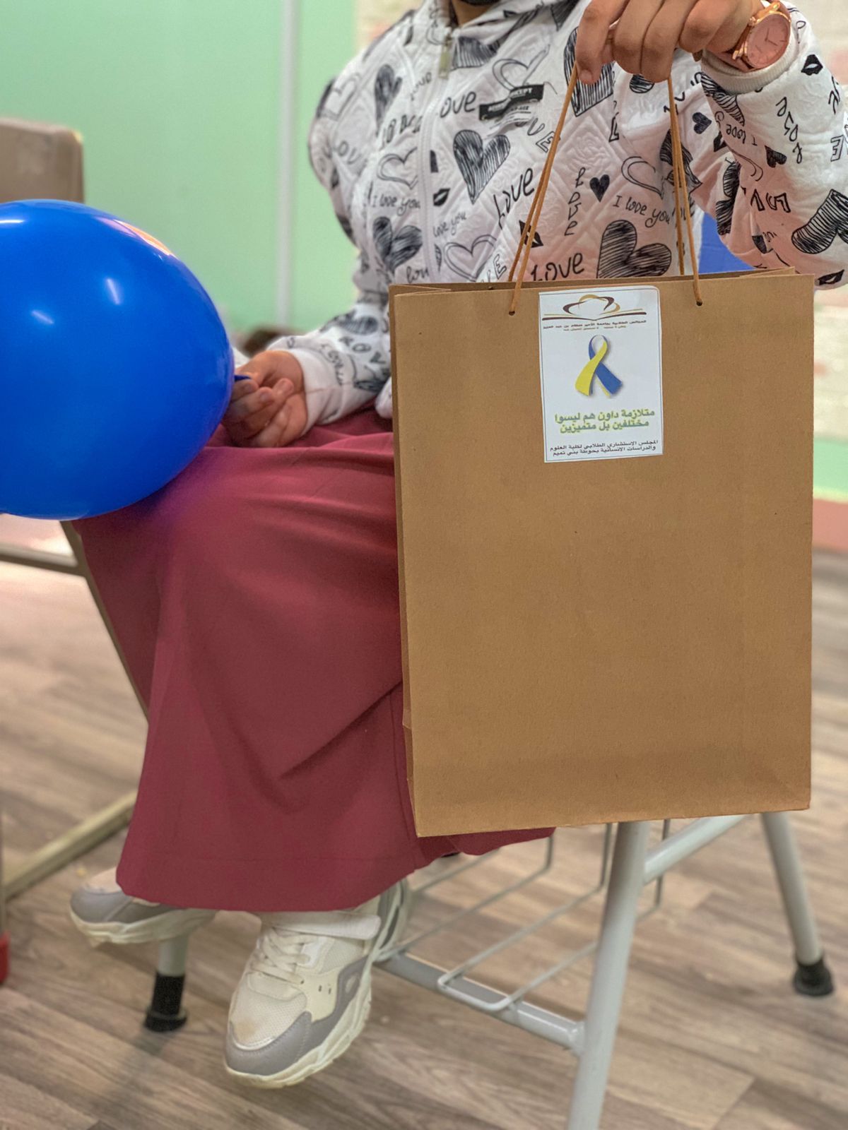( 12مارس) يوم يجمع بين البراءة والحنيه والطهر والسلام، إنه اليوم العالمي لمتلازمة داون والذي أُقيم هذا العام تحت شعار ( المشاركة والدمج الفعال بالمجتمع ) وانطلاقًا من رسالة الجامعة 2030 وإيمانًا منها بالدور الإيجابي لتعزيز الشراكة والمسؤولية الاجتماعية، وتحت رعاية عميدة كلية العلوم والدراسات الإنسانية بحوطة بني تميم د. حصه بنت سعود الهزاني نظم المجلس الاستشاري الطلابي بإشراف أ. تهاني عبدالرحمن الجويعد و أ. منيره إبراهيم التميمي يوم الأثنين الموافق: 18 / 8/ 1443هـــ برنامج بعنوان (هم ليسوا مختلفين بل متميزين) استهدف هذا البرنامج فئة متلازمة داون بالمدرسة الابتدائية( 13) بحوطة بني تميم، حيث قدمت طالبات المجلس الطلابي برنامج ترفيهي تضمن العديد من الأنشطة التفاعلية والإبداعية، واختتمت الزيارة بتوزيع الهدايا على جميع الطالبات، هدف هذا البرنامج إلى رسم البسمة على وجوه هذه الفئة إيمانًا منا بحقوقهم علينا لتشجيعهم على عيش حياة طبيعية من خلال إشراكهم في أنشطة تفاعلية وإضفاء أجواء من المرح والإيجابية.