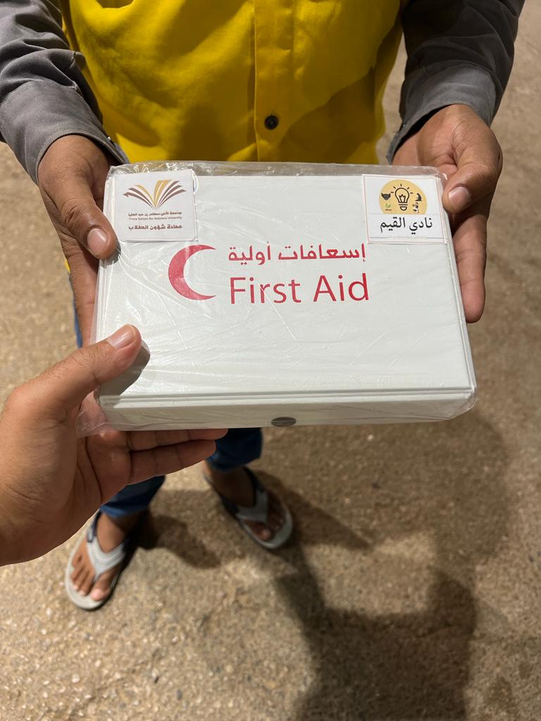يعتبر العمال أفراد مساهمين في تطوير ونهضة البلد وعمرانه، وصحتهم وسلامتهم مطلب مهم لا يخص المسؤولين عنهم فحسب وإنما كل فرد من أبناء المجتمع؛ ومن هذا المنطلق وتحت رعاية كريمة من سعادة عميدة كلية العلوم والدراسات الإنسانية الدكتورة حصة بنت سعود الهزاني، نظم نادي القيم الطلابية برنامج (كن عونًا) يوم الخميس الموافق 1444/4/9هـ الساعة ٩:٣٠ صباحًا. إعداد طالبات نادي القيم الطلابية وإشراف أ. فايزة سالم الحولي، والهدف من البرنامج تقديم حقائب إسعافات أولية للعمال، وتعريفهم ببعض الإرشادات الخاصة بالسلامة، وكيفية استخدام أدوات الإسعاف بطريقة صحيحة، وجاءت المبادرة تقديرًا لجهود العمال وحرصًا على سلامتهم. وتلقى العمال الحقائب برحابة وسرور.