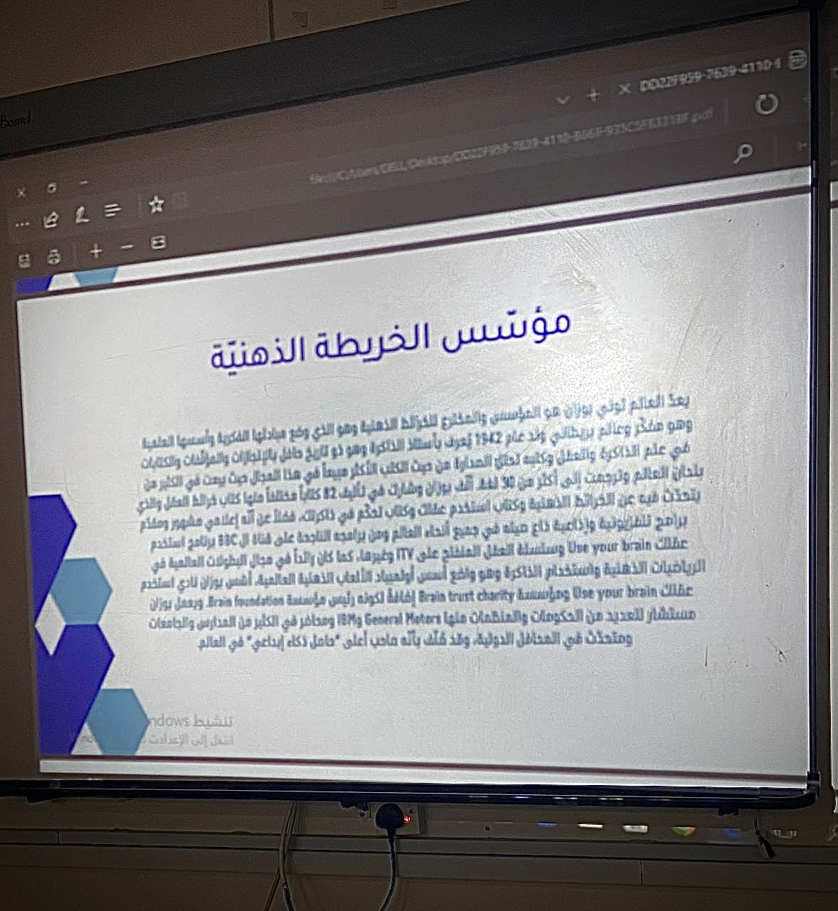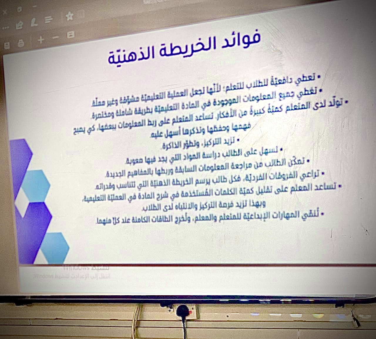 الخريطة الذهنية تقنية مبنية على نظام الرسومات، وهي مزودة بمفاتيح من شأنها أن تمكن الفرد من استخدام المهارات العقلية، ويمكن الاستفادة منها في جميع مجالات الحياة، ولكونها وسيلة ناجحة للمعلم والمتعلم معا، نظم المجلس الاستشاري الطلابي تحت رعاية عميدة كلية العلوم والدراسات الإنسانية بحوطة بني تميم د. حصه بنت سعود الهزاني برنامج بعنوان (قوة وأهمية الخرائط الذهنية في التعلم ) بإشراف أ. منيره إبراهيم التميمي وذلك يوم الأحد الموافق: 1/ 6/ 1444هــ الساعة 9:30 صباحًا بقاعة التدريب قدمتها طالبات المجلس الطلابي مي العميره و أميره البريك، في بداية البرنامج تم عرض مقدمة بسيطة عن الخرائط الذهنية ومفهومها ومؤسسها ثم فوائد وسلبيات استخدامها وكيفية رسم الخريطة الذهنية ومميزاتها، هدف هذا البرنامج إلى تنمية المهارات الإبداعية وزيادة فرص الاستيعاب لدى المتعلم.