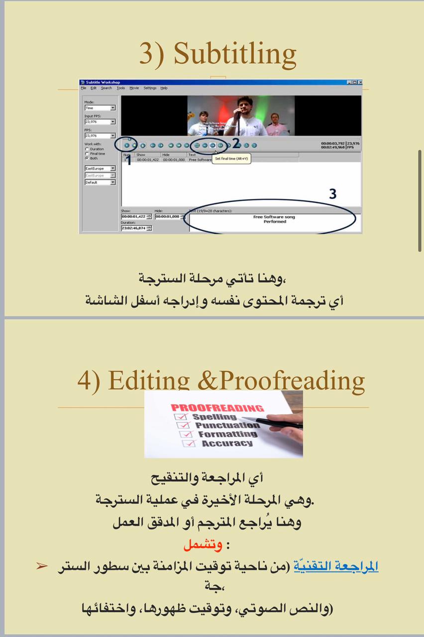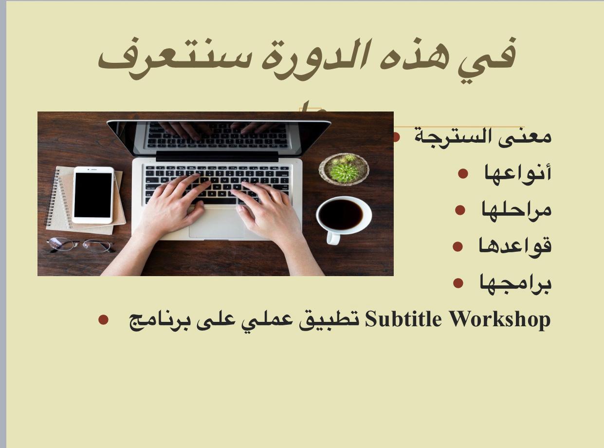 حيث بدأت الدورة ببيان معنى السترجة: مفهومها، تسميتها، أنواعها، مراحلها، وأهم القواعد في عملية السترجة، وختمت الدورة بتطبيق عملي مع الطالبات على برنامج Subtitle Workshop حيث تمت تجربة ترجمة بعض مقاطع الفيديو باستعمال هذا البرنامج، وتأتي مثل هذه الدورة كمساهمة في تقديم ما قد يساعد طالبات قسم اللغة الإنجليزية في رفع كفاءتهن في مهارة الترجمة والإلمام بأحد أهم فروعها في هذا العصر لتكن لهن مساهمة فعالة في نشر المعرفة والعطاء للمجتمع.