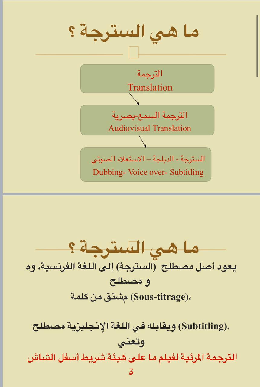 للمترجم دور مهم في خدمة المجتمع يكمن في نقل كل مفيد من نتاج شعوب العالم ليضعه أمام المتلقي العربي في قالب لغوي وثقافي مفهوم، ولا ننسى دوره كذلك في التعريف بثقافة هذا المجتمع وإيصال رسالته للعالم، وتزداد أهمية نوع خاص من أنواع الترجمة في ظل عصر التكنولوجيا والتقنية وهي ترجمة الأفلام "السترجة". حيث نظمت وحدة التدريب والخدمة المجتمعية دورة بعنوان "السترجة .. ترجمة مقاطع الفيديو" تحت رعاية عميدة كلية العلوم والدراسات الإنسانية بحوطة بني تميم د.حصة بنت سعود الهزاني، قدمتها منسقة الخدمة المجتمعية بقسم اللغة الإنجليزية أ. سحر الخثلان وذلك في تمام الساعة السابعة مساءً من يوم الأربعاء 4/ 7 /1442 هـ، عبر برنامج البلاك بورد، وقد حضر الدورة عدد من الطالبات من داخل الكلية وخارجها.