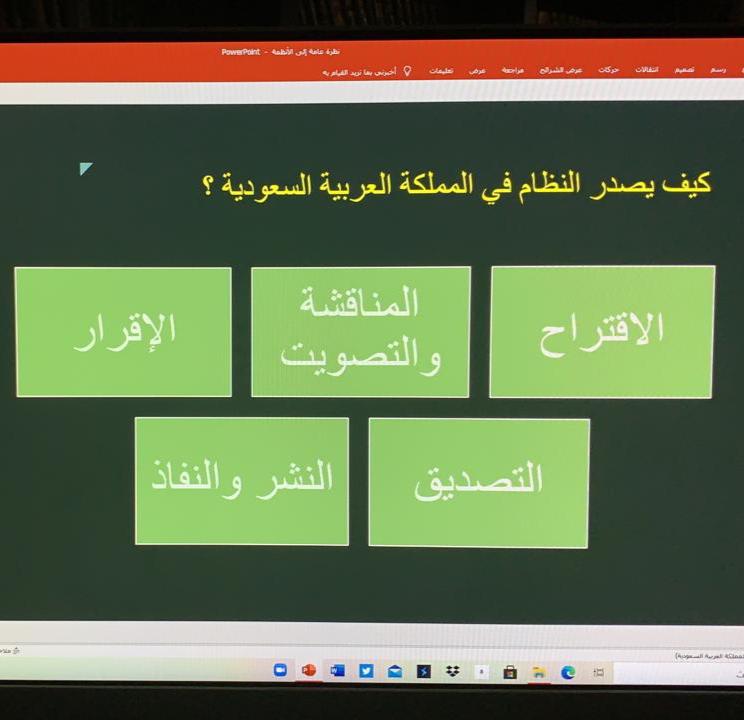 تعمل حكومة المملكة العربية السعودية على توفير العديد من الأنظمة المختلفة داخل المدن والمحافظات، حيث نظمت وحدة الخريجات لجنة تنمية المهارات المهنية بإشراف الدكتورة نحا القحطاني دورة بعنوان( التعريف بالأنظمة في المملكة العربية السعودية) تحت رعاية عميدة كلية العلوم و الدراسات الإنسانية بحوطة بني تميم، الدكتورة حصة بنت سعود الهزاني، من تقديم الدكتور خالد الذيابي، وذلك في يوم الأربعاء الموافق: ١٨/ ٨/ ١٤٤٢هـ.