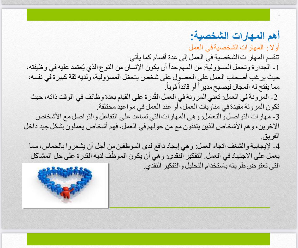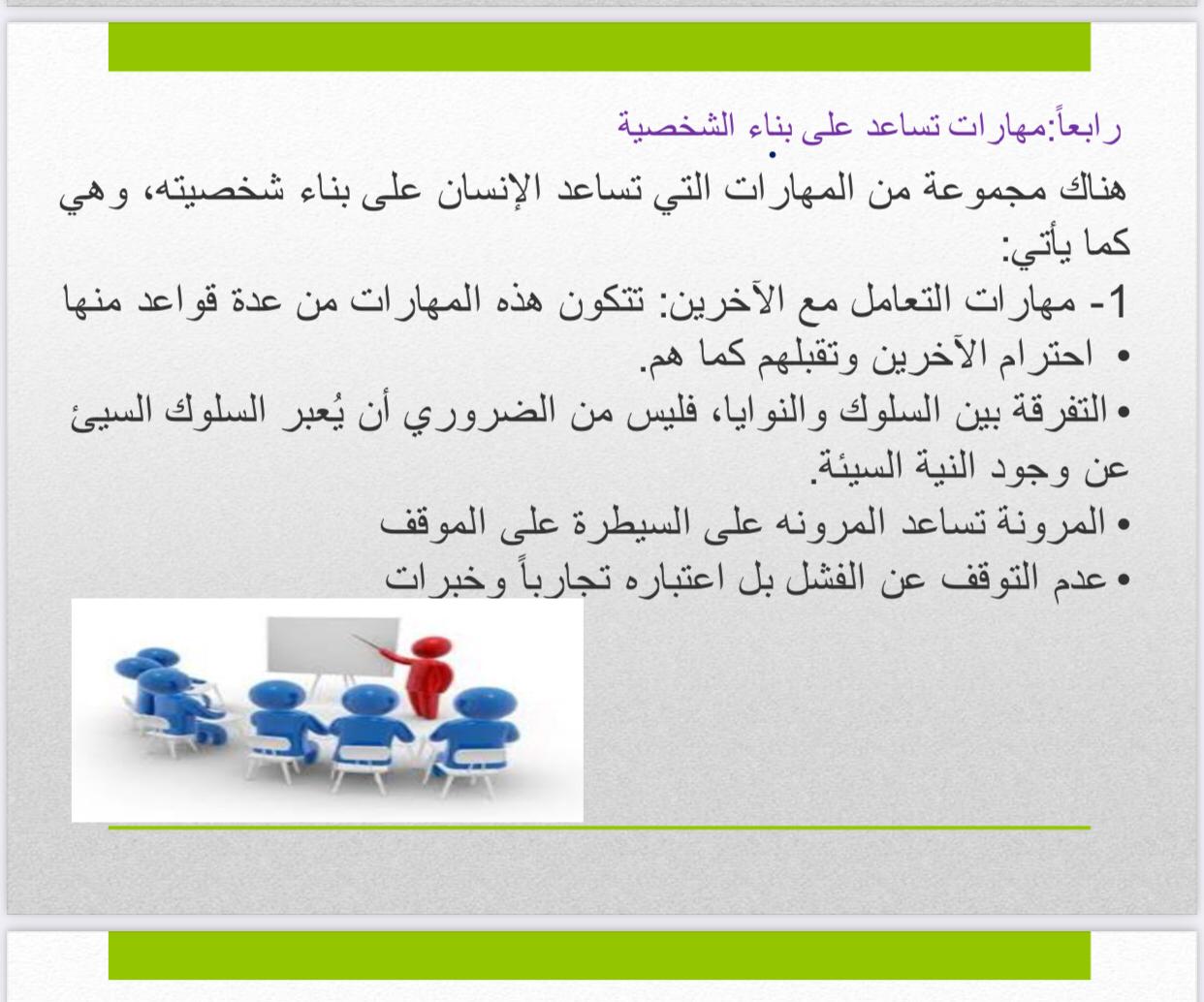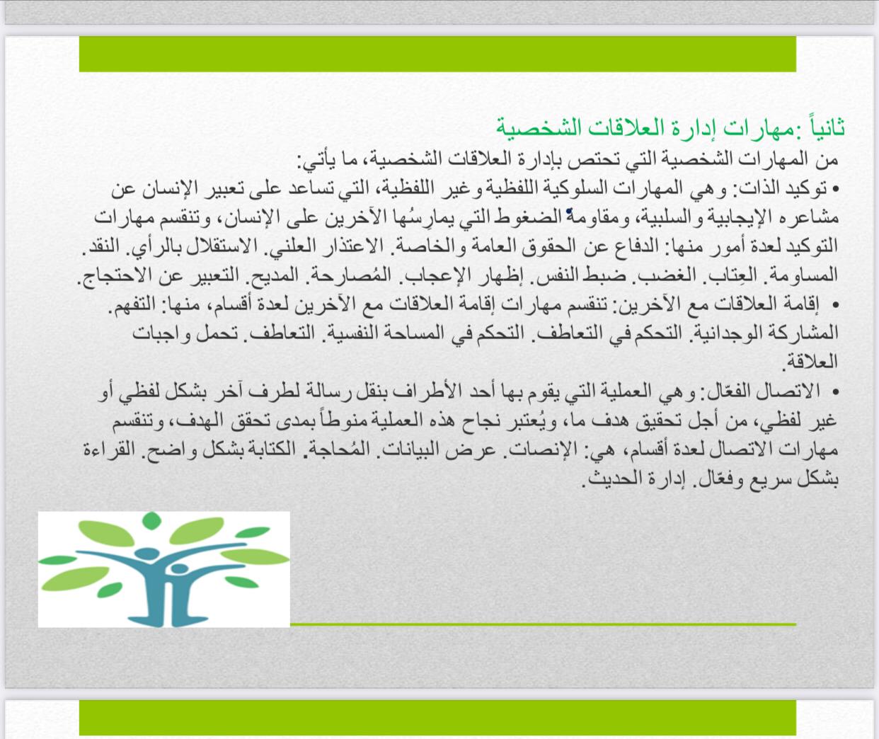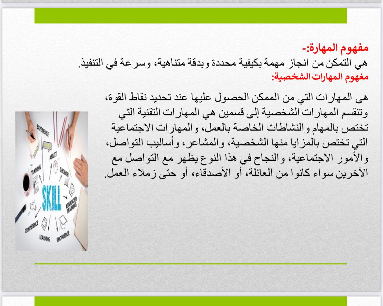 قدمت الدورة مفهوم المهارات الشخصية وأهميتها وأهم المهارات الشخصية في العمل وفي الشخصية القيادية.