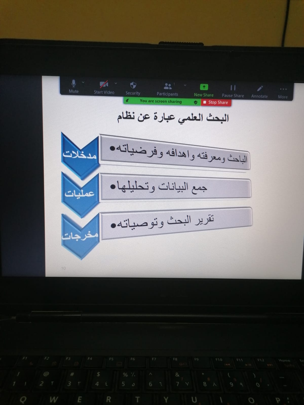 وأوضحت أنسب الطرق لتحديد مجتمع الدراسة وطرق أخذ العينات والحجم الأمثل لها، كما تم توضيح فوائد التحليل الإحصائي والمشاكل التي تواجه الباحث عند التحليل الإحصائي، ومن ثم اتيحت الفرصة للطالبات لعمل تطبيقي مصغر وكان هنالك تفاعل من قبل الطالبات.