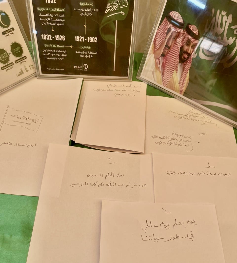 تلا ذلك تقديم المسابقات الثقافية والفنية والإنشادية والعبارات الوطنية، أيضًا تقديم الجوائز للمشاركات في المسابقات في جو من الحماس والبهاء للاستشعار بأهمية هذا اليوم. حفظ الله أمننا ووطننا.
