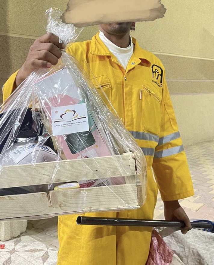 نظام التكافل الاجتماعي لا يقتصر على ضمان الأمور الضرورية والحيوية فقط، ولا يقتصر على مظهر واحد فحسب، بل هو مجموعة صور عديدة قيمة، وله مظاهر كثيرة ومتنوعه، من هذه الصور الجميلة مشاركة فرحة الأعياد والمناسبات مع فئات مختلفة من المجتمع، وبرعاية من عميدة كلية العلوم والدراسات الإنسانية بحوطة بني تميم د. حصه بنت سعود الهزاني نظم المجلس الاستشاري الطلابي بإشراف أ. تهاني عبدالرحمن الجويعد و أ. منيره إبراهيم التميمي يوم الخميس الموافق 20/ 9/ 1443هـ مبادرة بعنوان (سعادتنا من سعادتكم) تضمنت فكرة هذه المبادرة توزيع هدايا العيد على عمال النظافة بالمحافظة، وتأتي هذه المبادرة ضمن برامج المسؤولية الاجتماعية الشاملة لإدخال البهجة والسرور و دعم العمل الخيري وتحقيق صوره من صور التكافل المجتمعي والشعور بالانتماء إلى المجتمع.