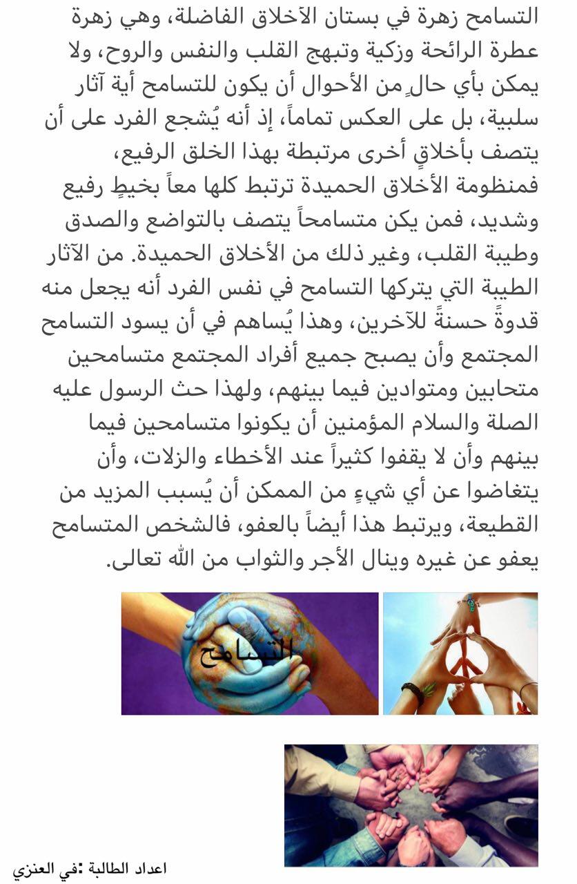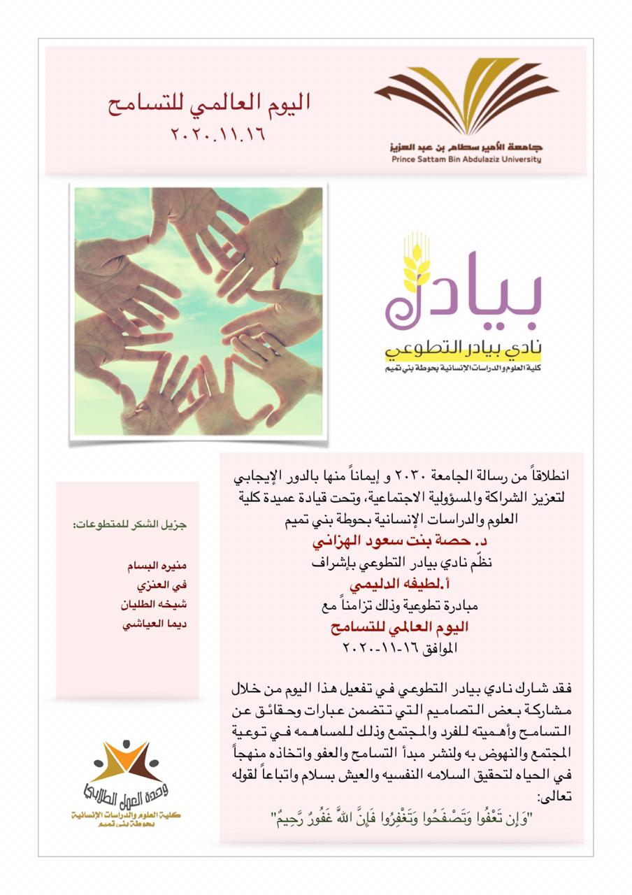 وذلك تزامناً مع اليوم العالمي للتسامح الموافق 16-11-2020م/1-4-1442هـ.
