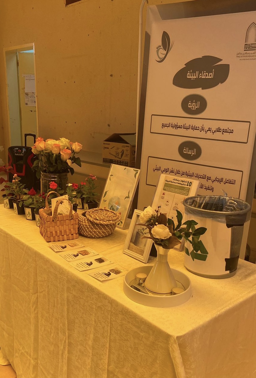 تعدُّ المحافظة على البيئة مسؤولية مجتمعية تتضافر فيها كافة الجهات وفئات المجتمع بمختلف نطاقاتها مثل الغطاء النباتي وإدارة النفايات، ومن هذا المنطلق نظم نادي أصدقاء البيئة بالتعاون مع وحدة العلاقات العامة تحت رعاية عميدة كلية العلوم والدراسات الإنسانية بحوطة بني تميم د. حصة بنت سعود الهزاني. ركنًا بعنوان (لنا ولأجيالنا) يومي الثلاثاء والأربعاء 29_ 30 / 8/ 1444هـ بإشراف د نادية لطفي وبمشاركة طالبات النادي.