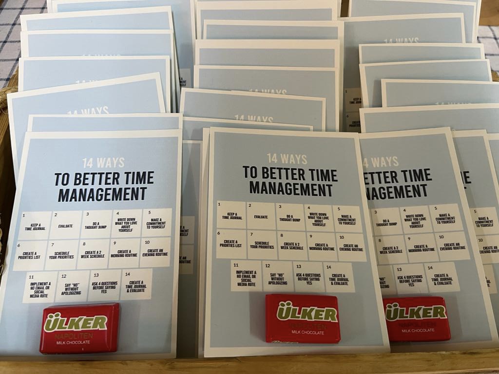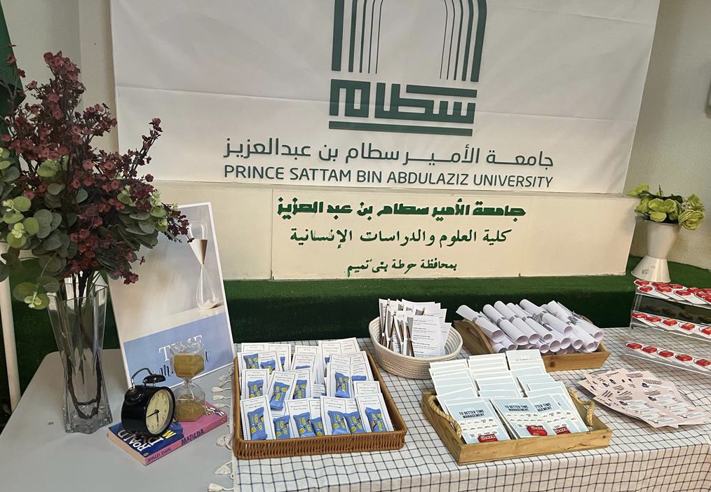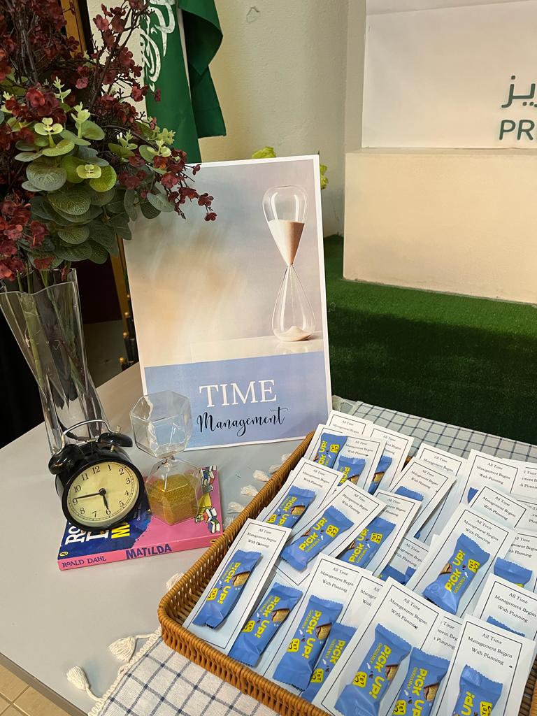 تحت رعاية عميدة كلية العلوم والدراسات الإنسانية بحوطة بني تميم د. حصة بنت سعود الهزاني نظمت وحدة العمل الطلابي ممثلة بقسم اللغة الإنجليزية ركنًا بعنوان (إدارة الوقت)، تحت إشراف أ. منى زايد. وذلك في يوم الإثنين الموافق ١٤٤٥/٤/٨ هـ بتمام الساعة ١١:٠٠ في بهو الكلية، حيث أعدت الطالبات توزيعات تحاكي أهمية الوقت، ومدى الحرص على إيجاد مدونات تعين على أهمية الحفاظ على الوقت في ظل حضور المنسوبات والطالبات.