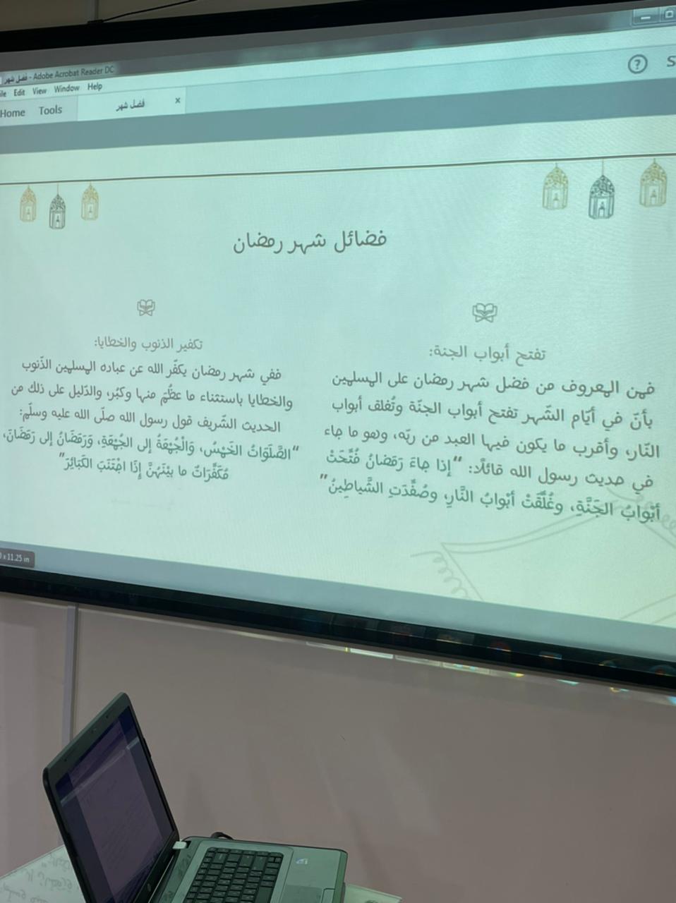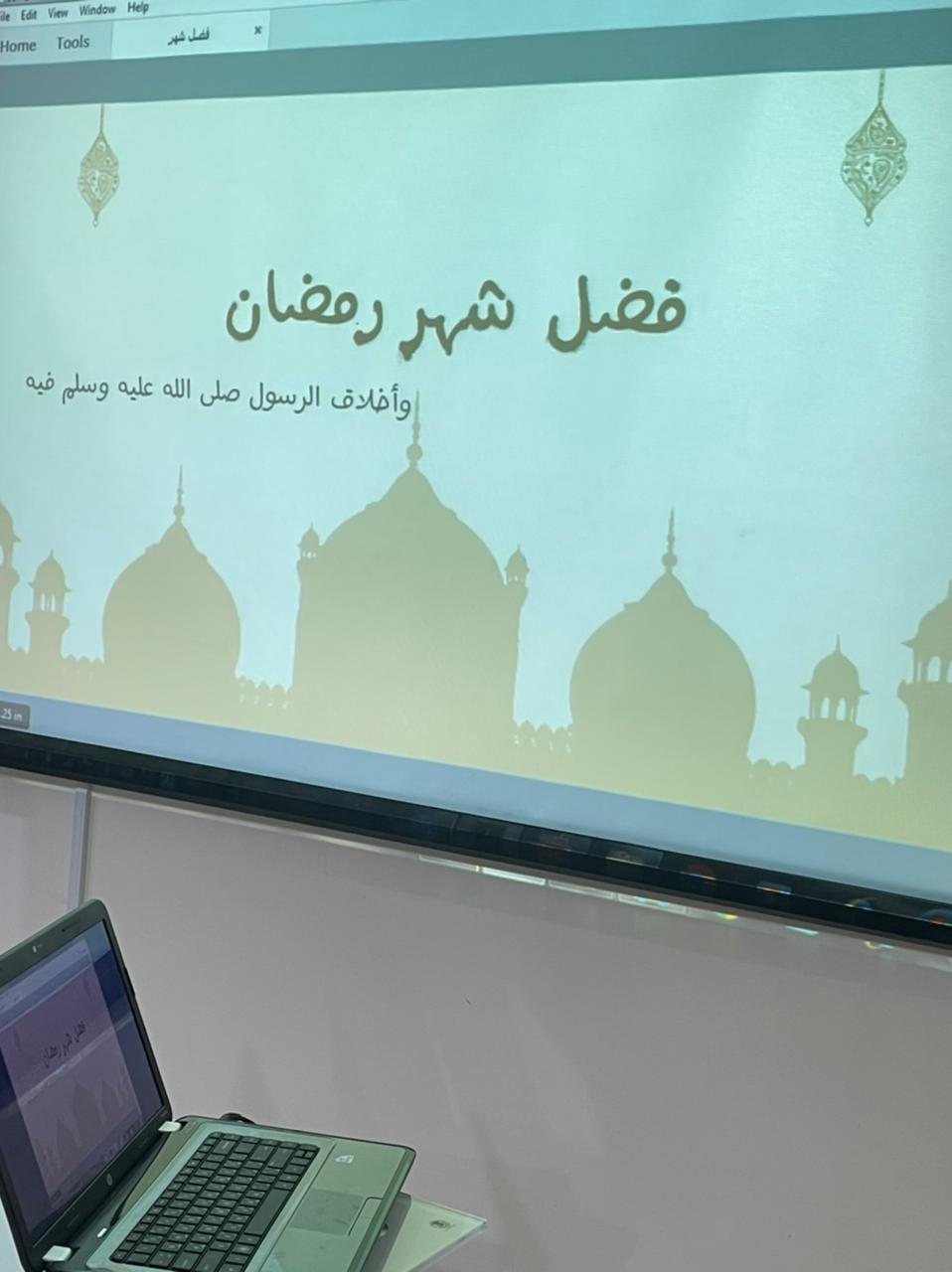 تضمن البرنامج عرضًا اشتمل على آيات قرآنية وأحاديث نبوية عن فضل شهر رمضان وأنه شهر القرآن وأهم الأعمال فيه وفضل القيام، والسحور وعن فضل ليلة القد، وعن أخلاق رسول الله صلى الله عليه وسلم في شهر رمضان، كما اشتمل البرنامج على ركن شاركت فيه الطالبات بتوزيعات عن فضل القرآن، وقدوم رمضان.