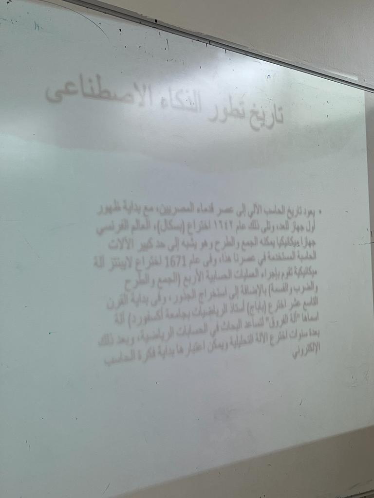 تهدف الفعالية إلى إثراء معرفة الطالبات بأخر وأهم تطورات الحاسب الآلي في الذكاء الاصطناعي والذي يعد أحد فروع علوم الحاسب. بدأت الفعالية بالتعريف بمفهوم الذكاء الاصطناعي ونبذه عن نشأته وتاريخه.