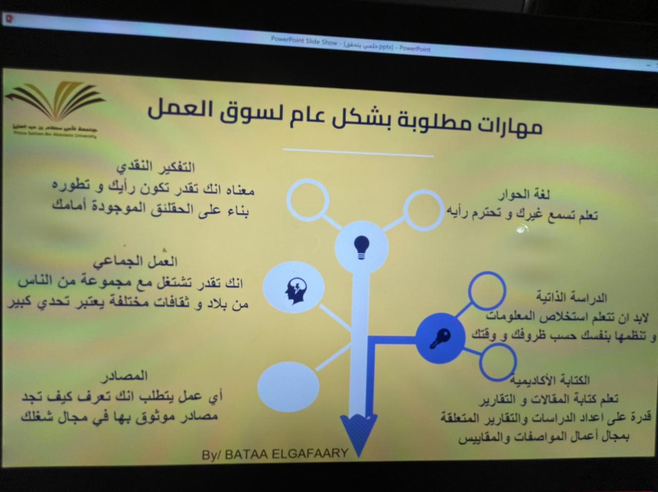تسعى كلية العلوم والدراسات الإنسانية بحوطة بني تميم تحت رعاية عميدة الكلية د. حصة بنت سعود الهزاني إلى تحقيق أعلى استفادة للطالبة الجامعية قبل المتخرجة عن طريق الإجابة على سؤال الكثير من الطالبات "ماذا بعد التخرج؟